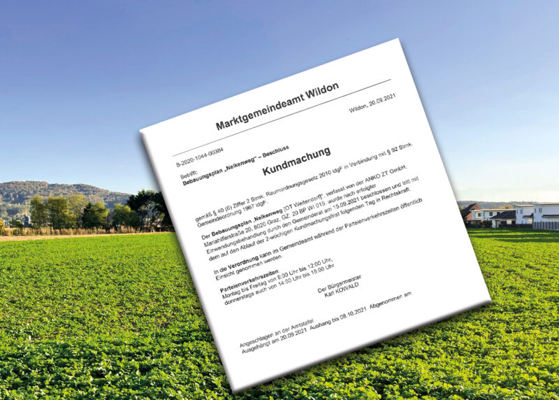 Weiterlesen...Projekt-Update: Weitendorf bei Wildon – Nelkenweg – Bebauungsplan ist rechtskräftig!