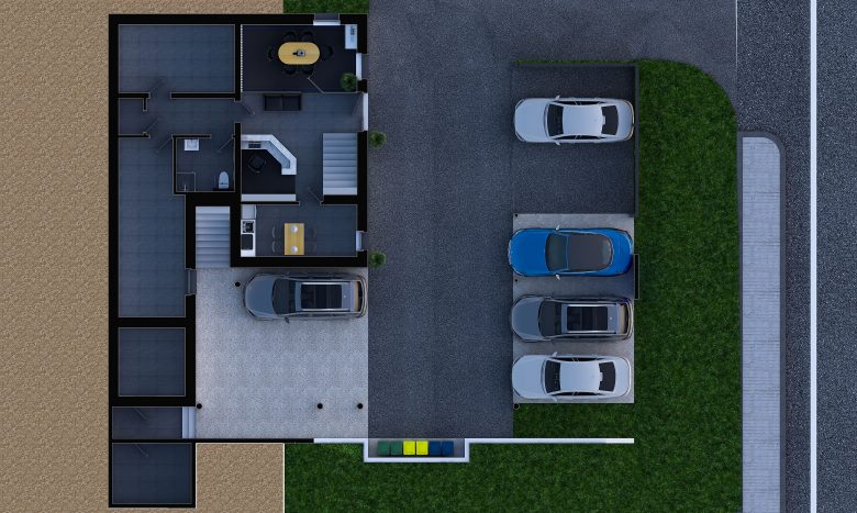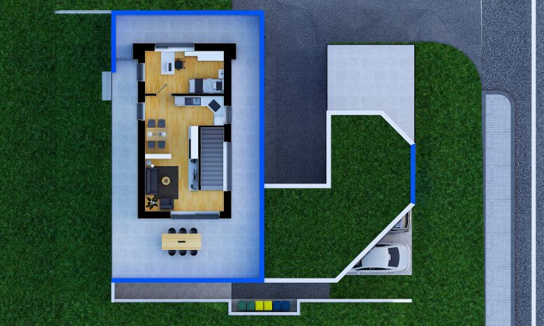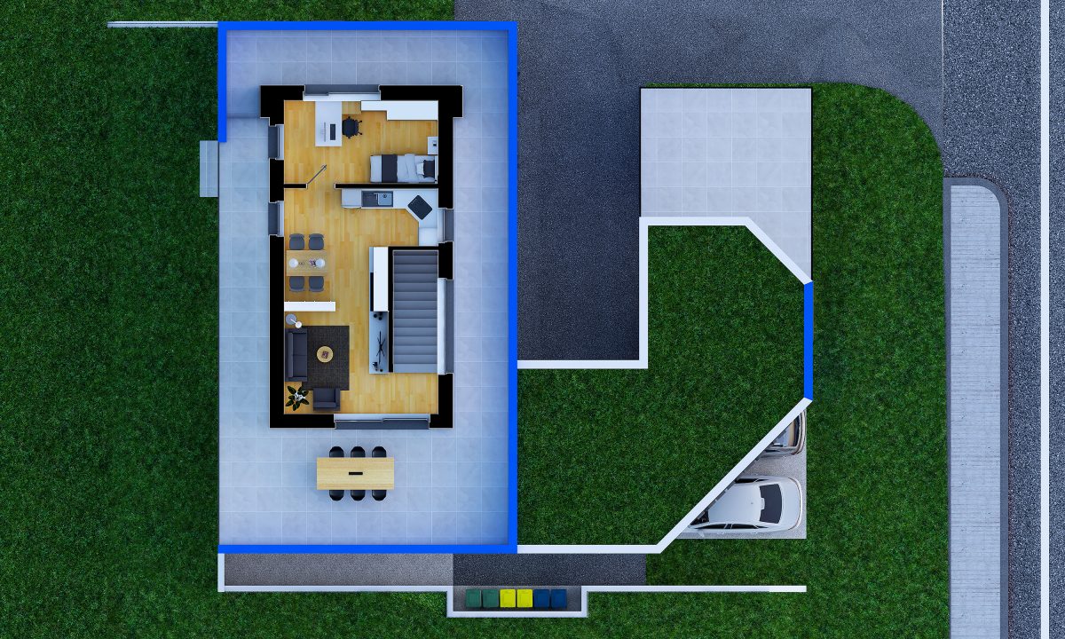 Das Objekt ist nun nicht nur bezugsfertig, sondern auch die Außenanlagen wurden abgeschlossen. Die Zufahrts- und Parkplatzbereiche wurden asphaltiert, bzw. gepflastert und die Gartenbereiche samt Einfriedung fertiggestellt.