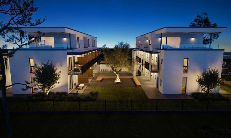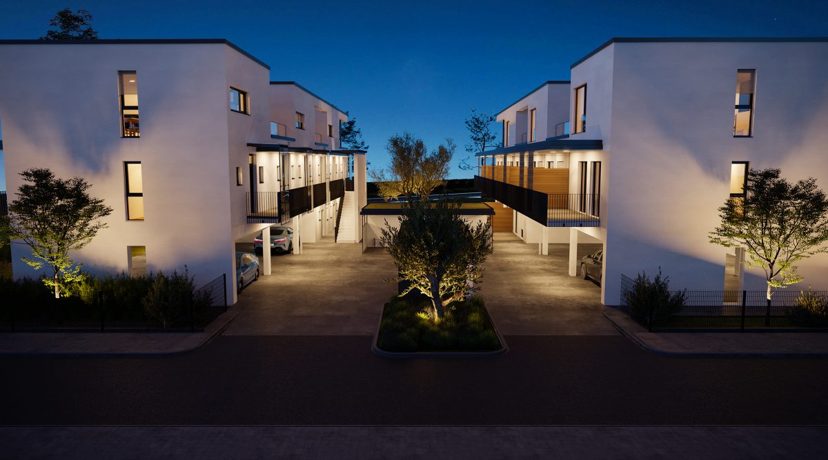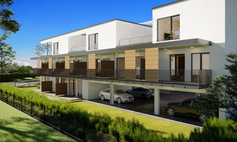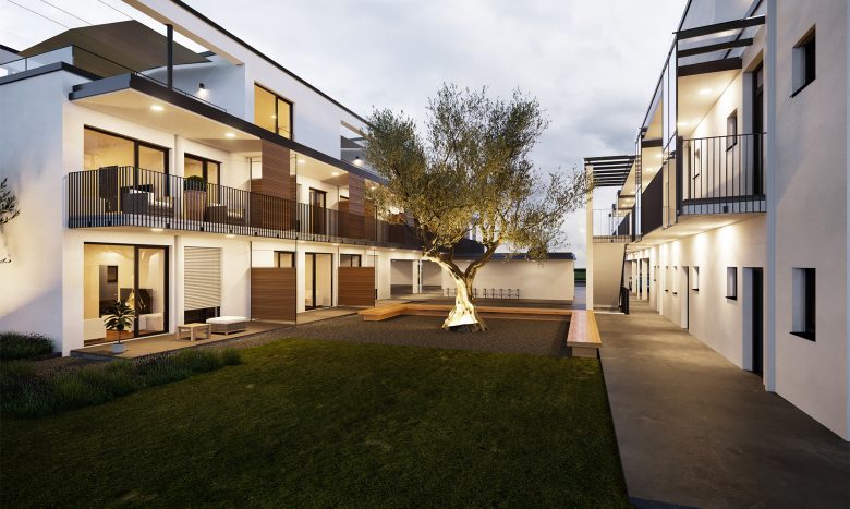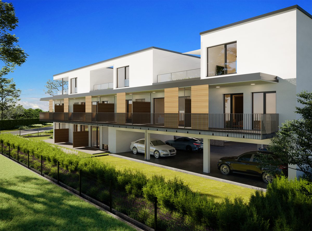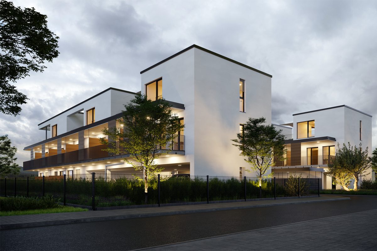 Die beiden Wohngebäude werden in Ziegelmassivbauweise, sowohl innen als auch außen, errichtet, und haben einerseits einen Wohnungstyp mit zwei Zimmern und andererseits einen Wohnungstyp mit 3 Zimmern zu bieten. Die 3-Zimmer-Wohnungen sind auf zwei Geschosse im Sinne einer Maisonette-Wohnung aufgeteilt, und können aufgrund der großen Dach-Terrasse und dem daraus resultierenden Penthouse-Charakter vollends glänzen. Darüber hinaus sind großzügige Balkonflächen nicht nur bei den Maisonette-, sondern auch bei den kleinen Wohnungen enthalten. Die jeweils drei im Erdgeschoss positionierten Wohnungen offerieren neben einer gemütlichen Terrasse auch einen eigenen Garten. Gebäudeintegrierte Parkmöglichkeiten sind jeder Wohnung zugeteilt, sowie auch geräumige Kellerabteile.