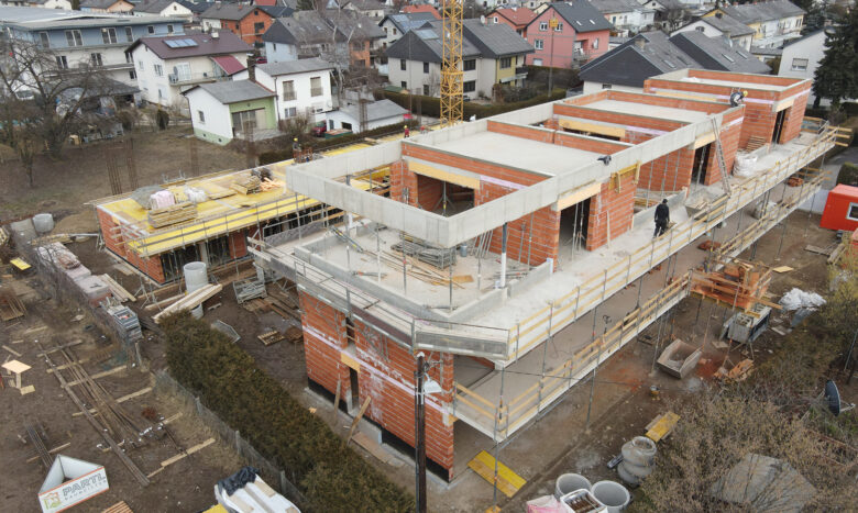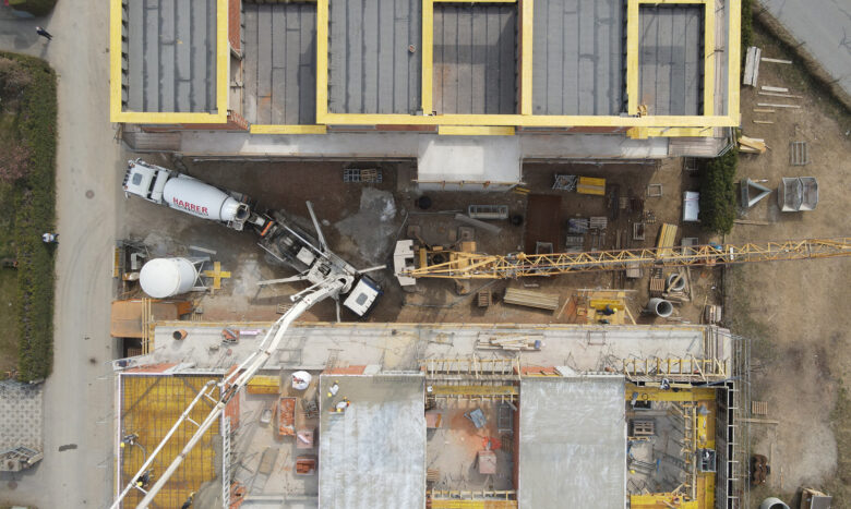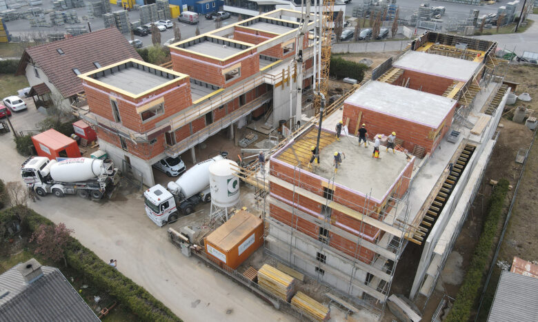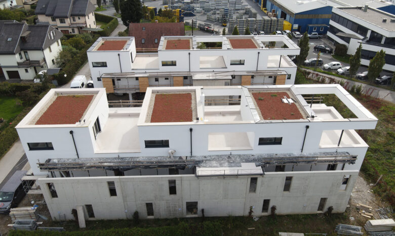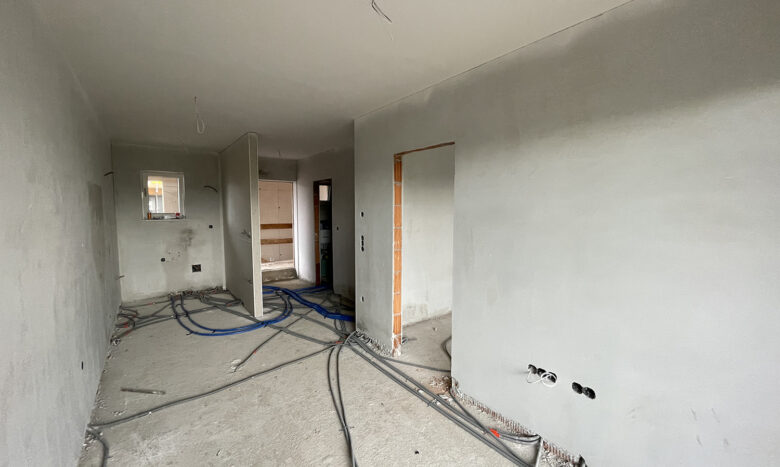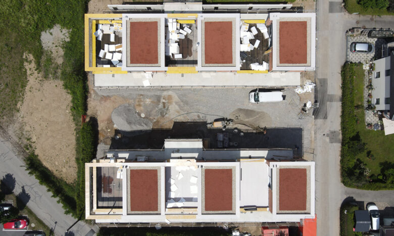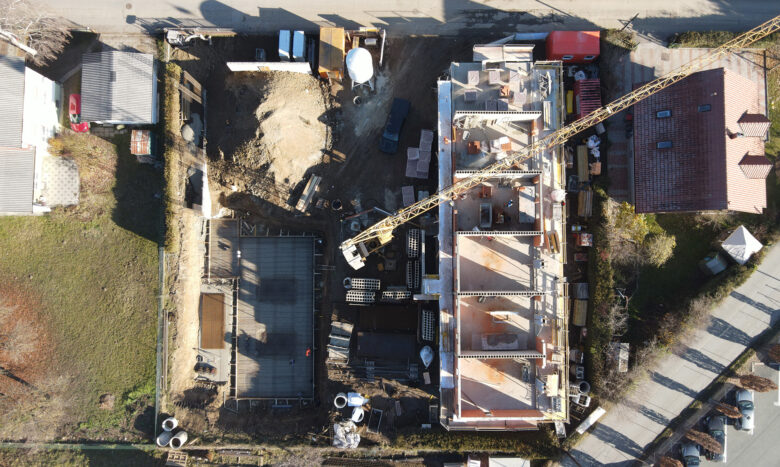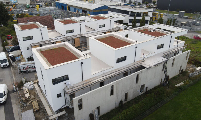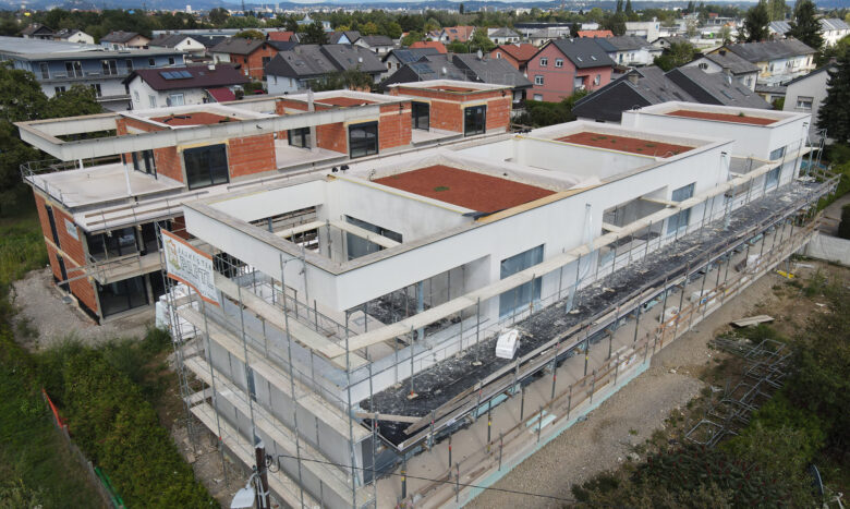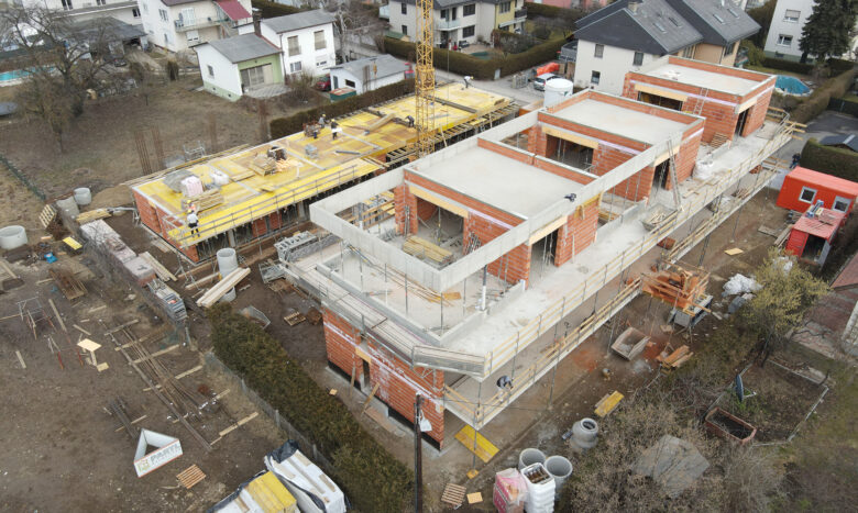 Beim vorliegenden Projekt wurden die Arbeiten am Rohbau abgeschlossen. Somit steht schon das Grundkonstrukt des Gebäudes. Darüber hinaus wurde auch das Dach abgedichtet.