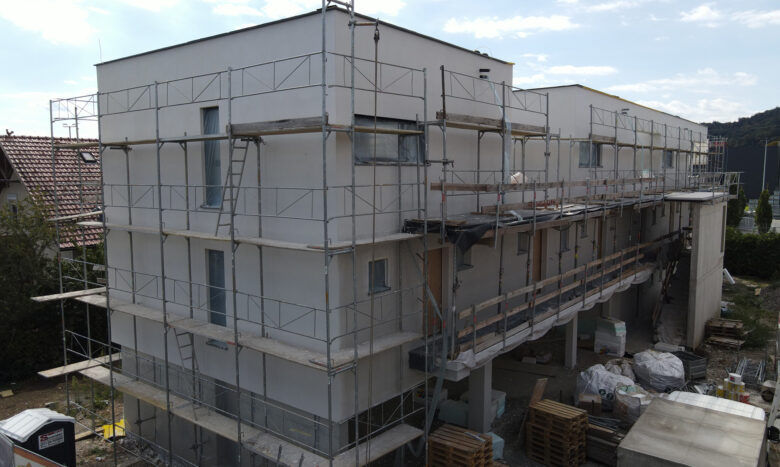 Einen weiteren großen Sprung haben wir bei unserem Wohnprojekt erreicht, und zwar wurde nun auch die Fassade fertiggestellt. Die Fenster wurden noch vor dem Innenputz eingebaut, wodurch das äußere Erscheinungsbild des Objektes langsam seine Endform annimmt.