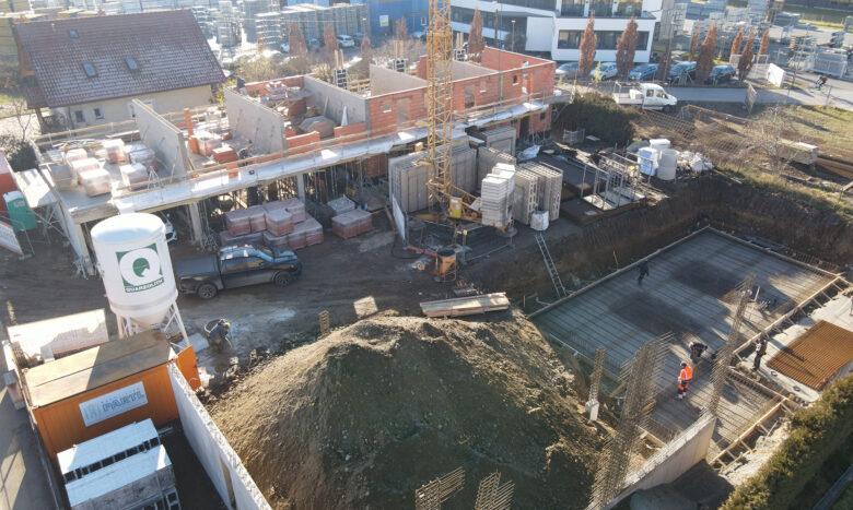 Es ist soweit! Der Startschuss für unser Wohnprojekt ist gefallen, und nun können Sie beobachten, wie zügig das Objekt seine Form annimmt. Schon bald ist die Bodenplatte betoniert und die Wände können aufgemauert werden.