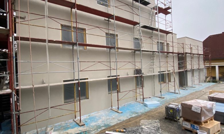 Einen weiteren großen Sprung haben wir bei unserem Wohnprojekt erreicht, und zwar wurde nun auch die Fassade fertiggestellt. Die Fenster wurden noch vor dem Innenputz eingebaut, wodurch das äußere Erscheinungsbild des Objektes langsam seine Endform annimmt.