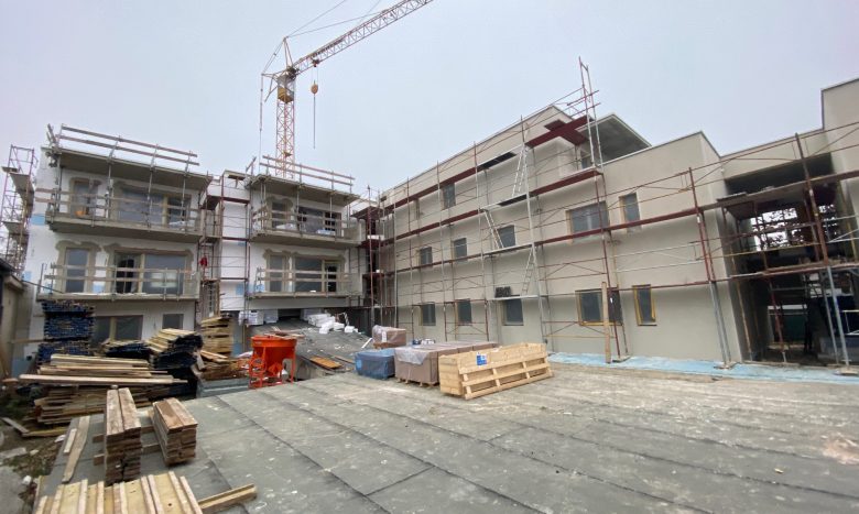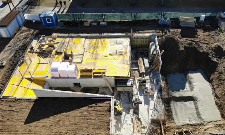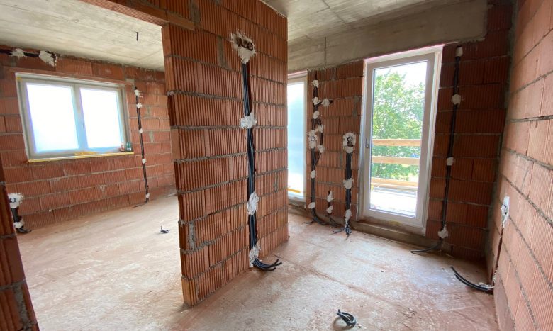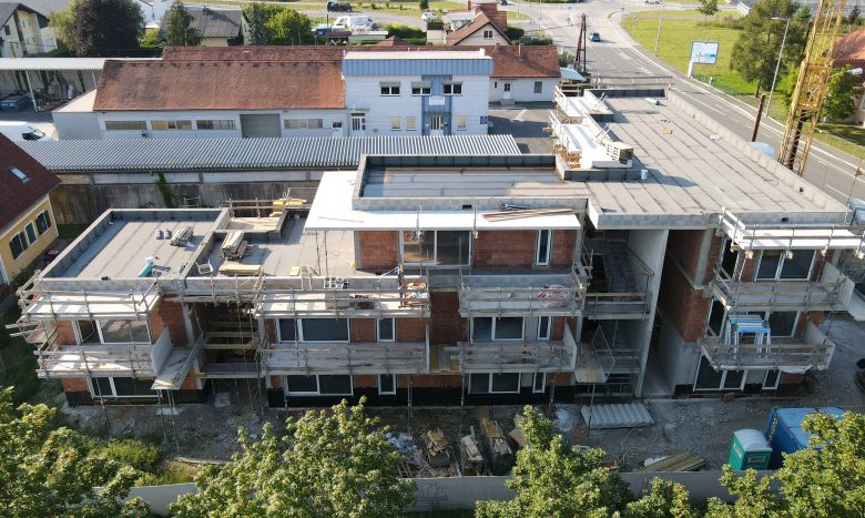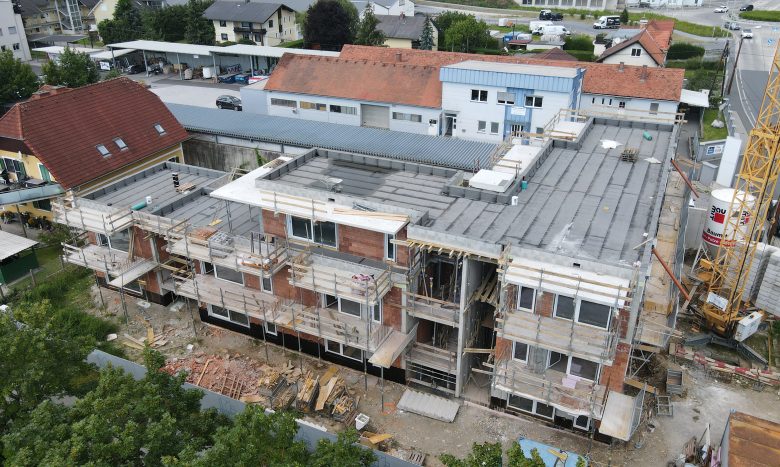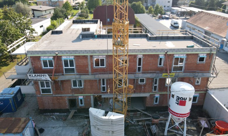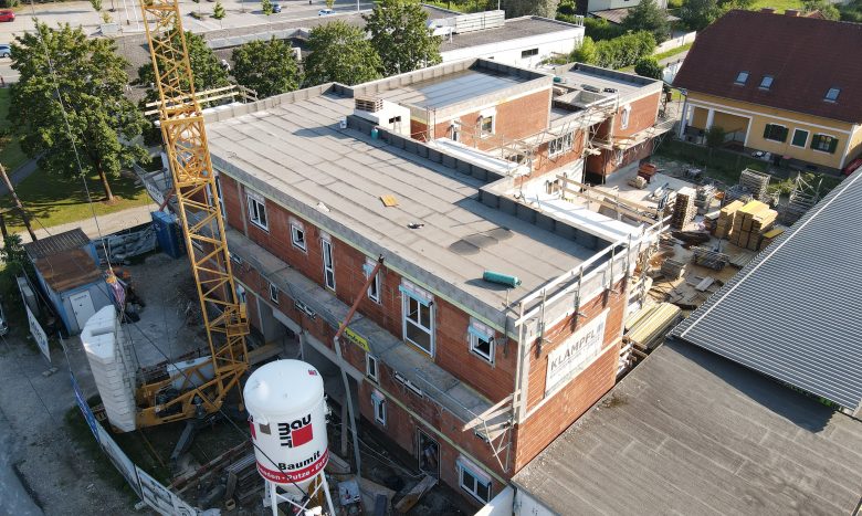 Beim vorliegenden Projekt wurden die Arbeiten am Rohbau abgeschlossen. Somit steht schon das Grundkonstrukt des Gebäudes. Darüber hinaus wurde auch das Dach abgedichtet.