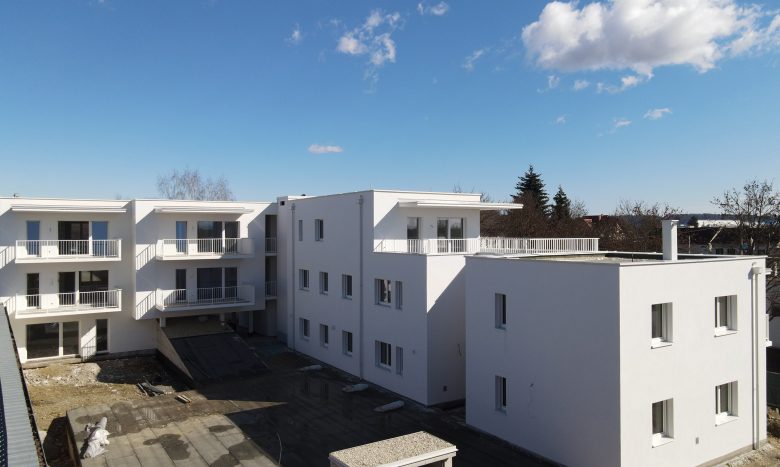 Das Objekt ist nun nicht nur bezugsfertig, sondern auch die Außenanlagen wurden abgeschlossen. Die Zufahrts- und Parkplatzbereiche wurden asphaltiert, bzw. gepflastert und die Gartenbereiche samt Einfriedung fertiggestellt.