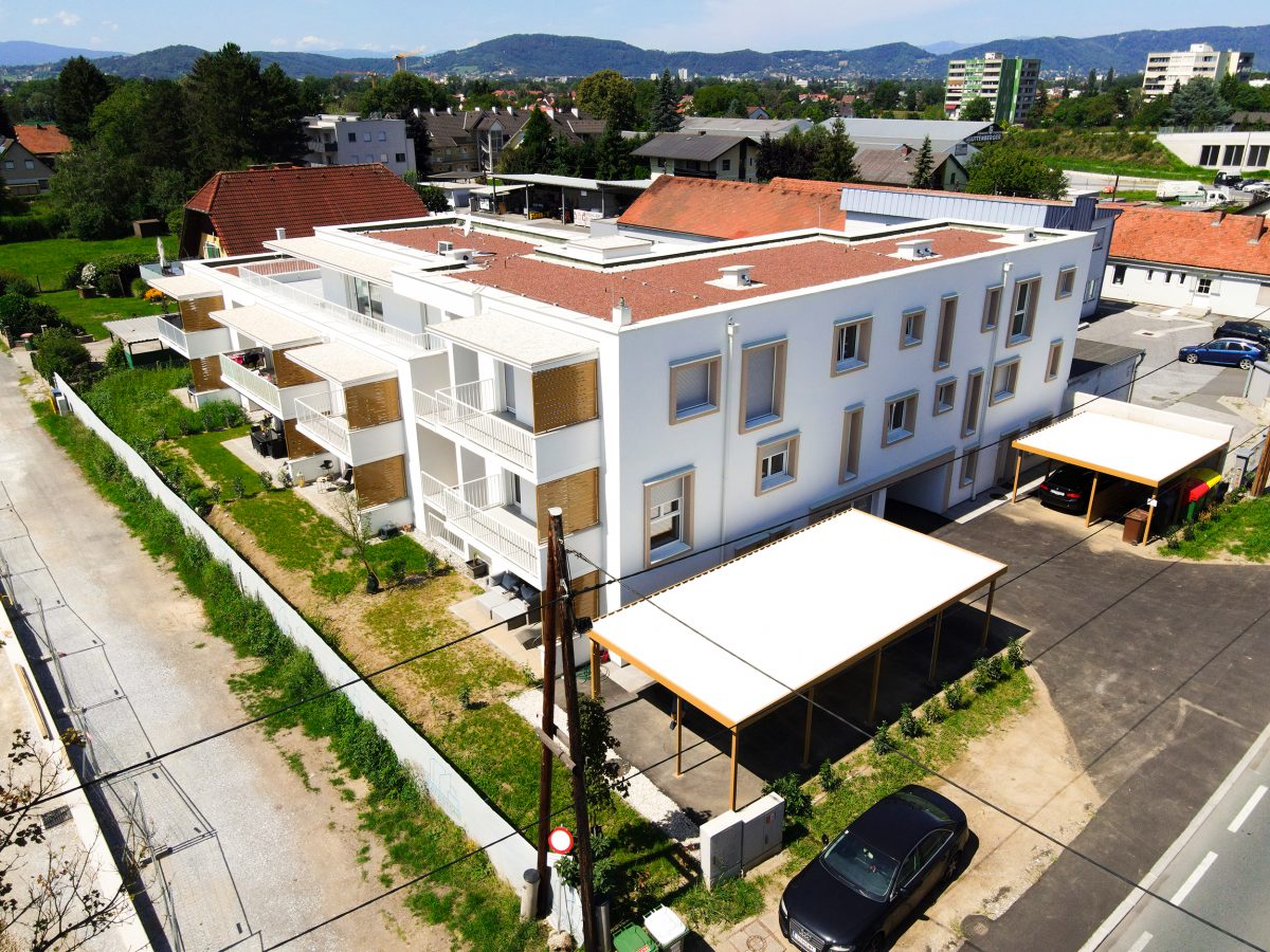 Hergestellt wird ein Ziegelmassiv-Baukörper in Südwest-Ausrichtung, der mit insgesamt 15 Wohneinheiten zu Buche schlägt. Eine Penthouse-Wohnung, die mit einer Dachterrasse von rund 53 m² zu begeistern weiß, ist ebenso ein Teil davon. Für Parkmöglichkeiten ist einerseits durch die Tiefgarage und andererseits durch Carports gesorgt. Großzügige Gartenanteile und Balkons sowie die Liftanlage für einen barrierefreien Zugang zu allen Wohngeschossen runden das Wohlgefühl in dieser wunderschönen Wohnanlage gänzlich ab.
