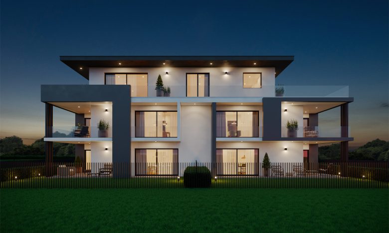 Das Objekt ist nun nicht nur bezugsfertig, sondern auch die Außenanlagen wurden abgeschlossen. Die Zufahrts- und Parkplatzbereiche wurden asphaltiert, bzw. gepflastert und die Gartenbereiche samt Einfriedung fertiggestellt.