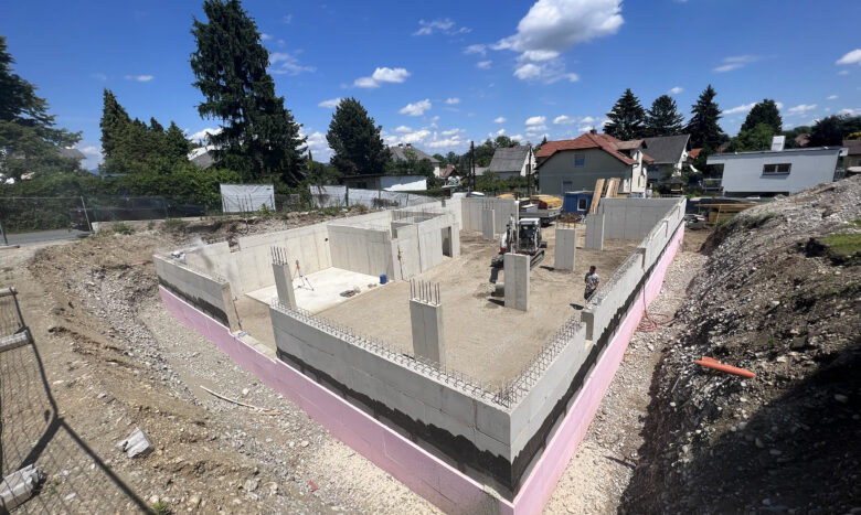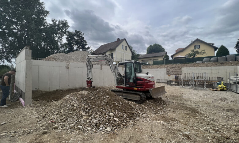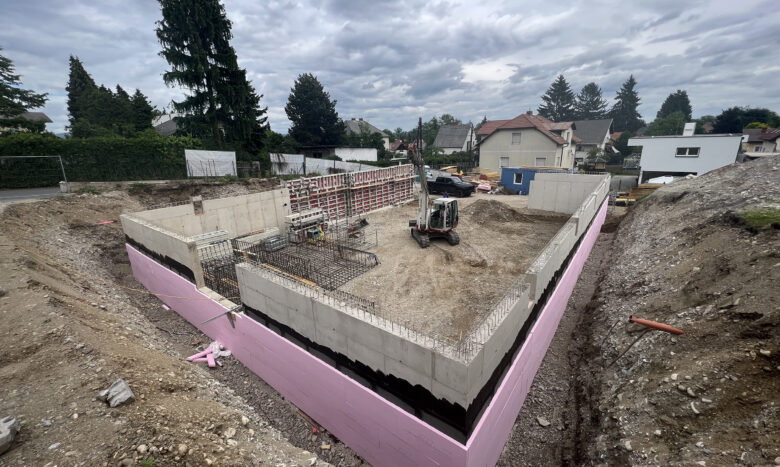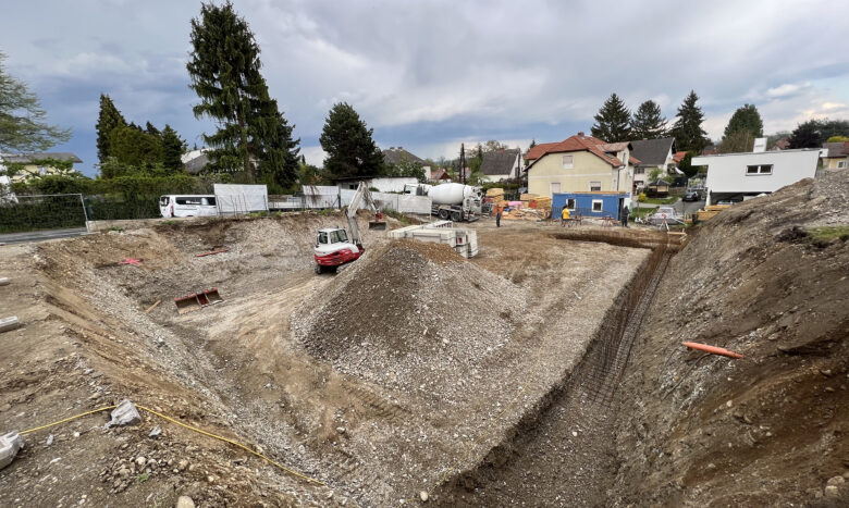 Es ist soweit! Der Startschuss für unser Wohnprojekt ist gefallen, und nun können Sie beobachten, wie zügig das Objekt seine Form annimmt. Schon bald ist die Bodenplatte betoniert und die Wände können aufgemauert werden.