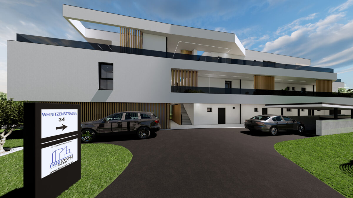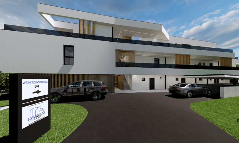 Wie auch alle bisherigen Fatestone-Immobilien, wird auch diese Wohnanlage in Ziegelmassiv-Bauweise, sowohl innen als auch außen, hergestellt. Die zugeteilten Gartenanteile sind allesamt abseits der Weinitzenstraße gen Süden ausgerichtet. Im Erdgeschoss sind 5 Gartenwohnungen geplant, hingegen man im ersten Obergeschoss nur noch 3 Wohnungen vorfindet. Im Penthouse-Geschoss sind lediglich zwei Wohnungen untergebracht, allerdings sind dies auch die Perlen dieser Wohnanlage. Neben der Penthouse-Studio-Wohnung, die mit süßen 36 m² Wohnfläche und einer 50-m²-Dachterrase brilliert, ist hier auch eine 74 m² große Penthouse-Wohnung vorhanden, die mit einer gigantischen Penthouse-Terrasse von über 185 m² zu begeistern weiß. Erreichbar ist nicht nur das Penthouse-Geschoss über den Lift, sondern auch alle übrigen Geschosse, wie auch die hauseigene Tiefgarage mit über 12 Parkplätzen.