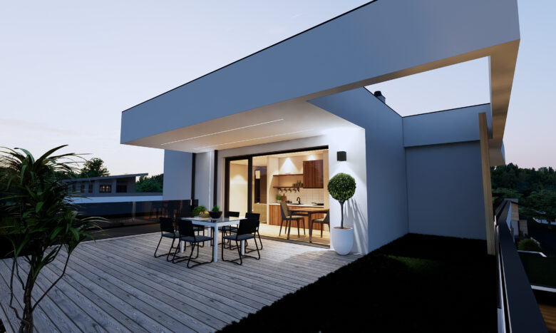 Das Objekt ist nun nicht nur bezugsfertig, sondern auch die Außenanlagen wurden abgeschlossen. Die Zufahrts- und Parkplatzbereiche wurden asphaltiert, bzw. gepflastert und die Gartenbereiche samt Einfriedung fertiggestellt.