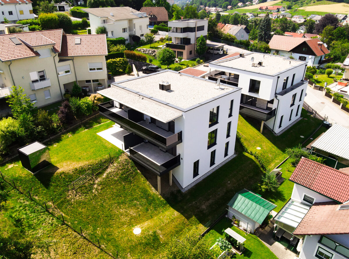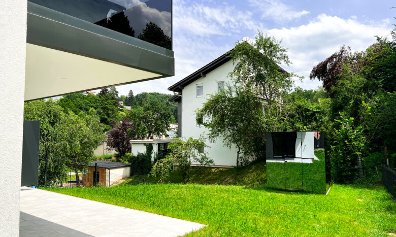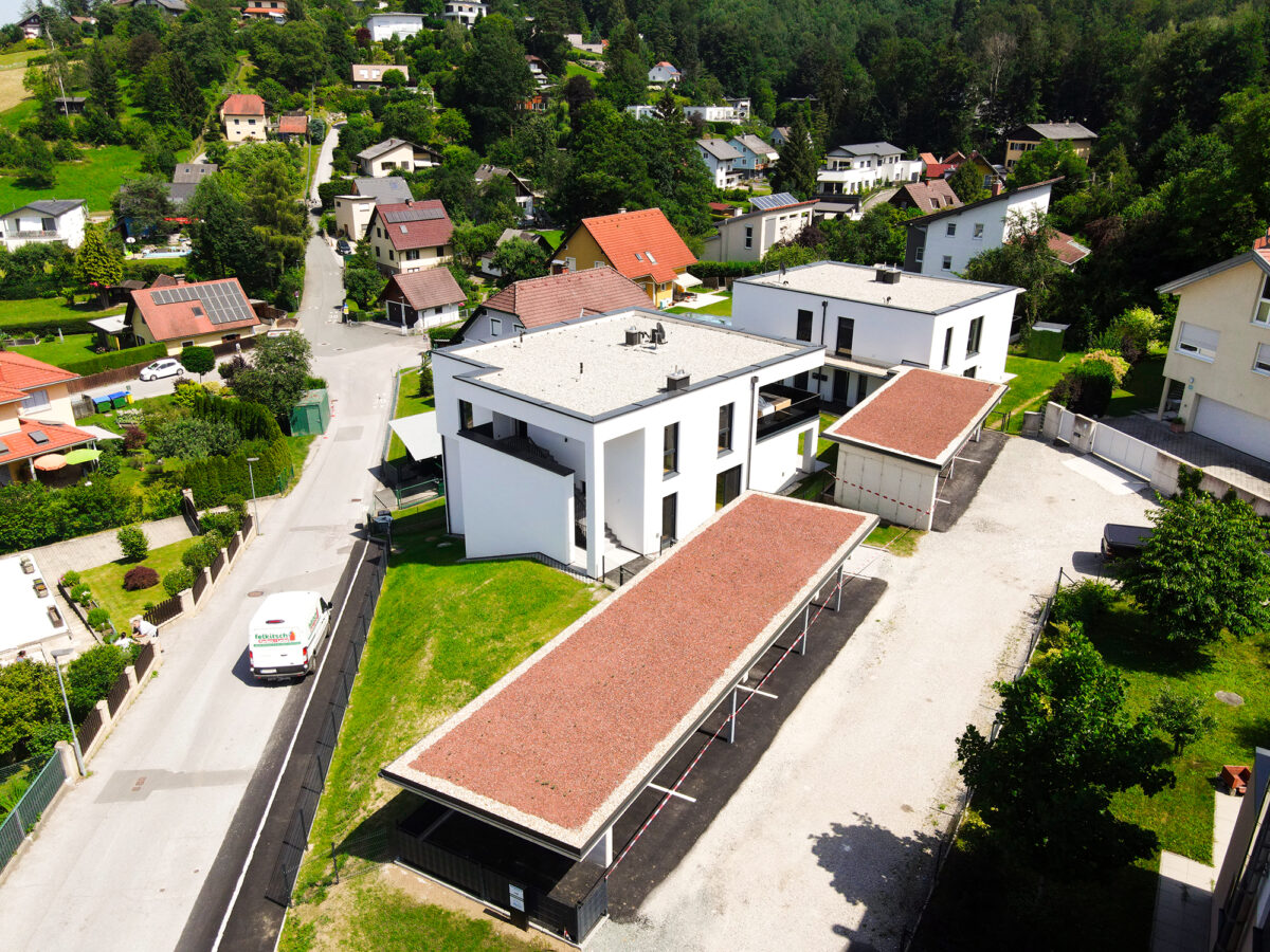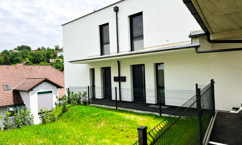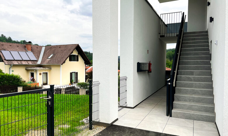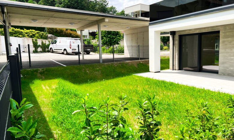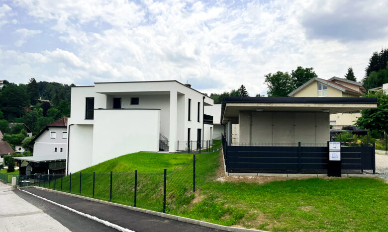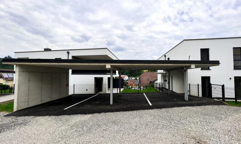 Das Objekt ist nun nicht nur bezugsfertig, sondern auch die Außenanlagen wurden abgeschlossen. Die Zufahrts- und Parkplatzbereiche wurden asphaltiert, bzw. gepflastert und die Gartenbereiche samt Einfriedung fertiggestellt.