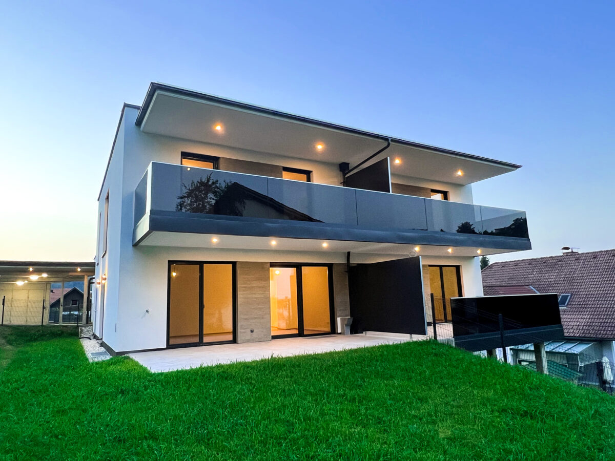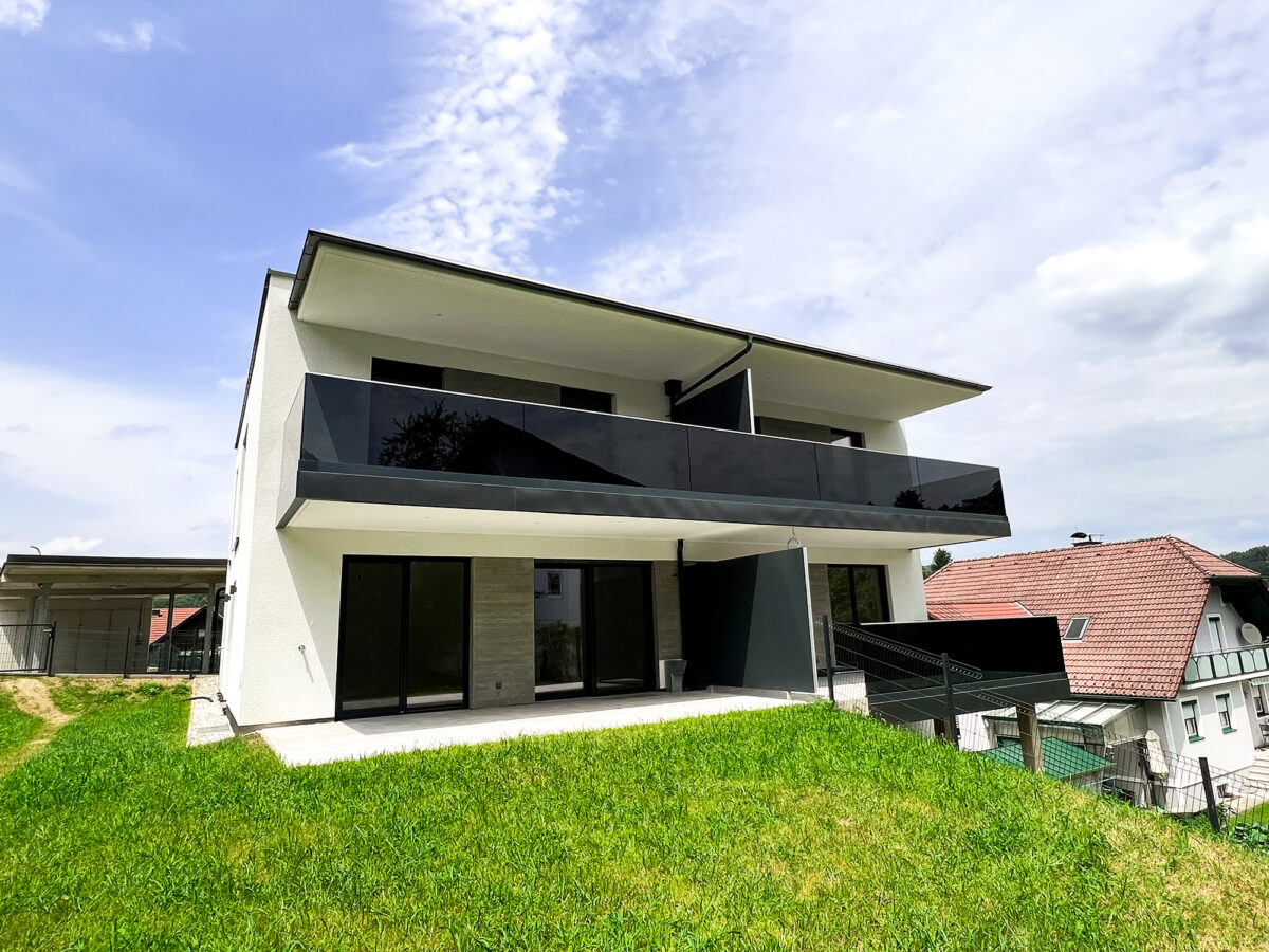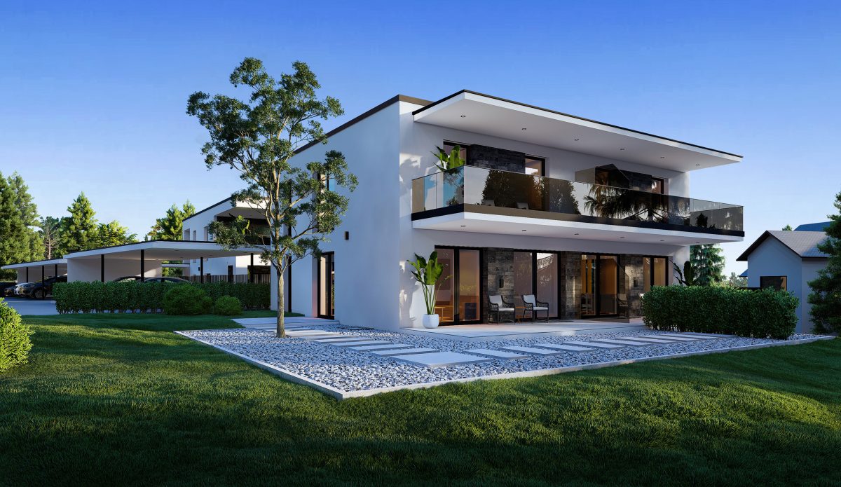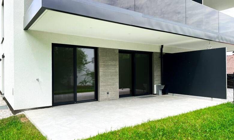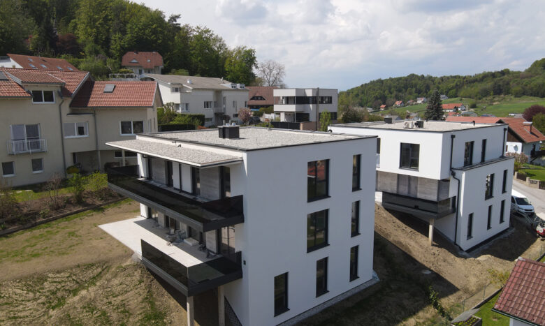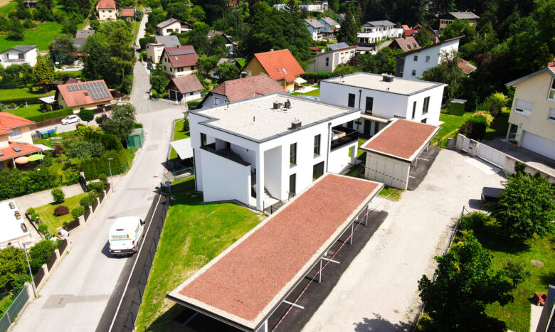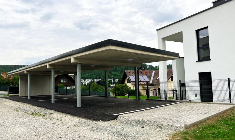 Das Objekt ist nun nicht nur bezugsfertig, sondern auch die Außenanlagen wurden abgeschlossen. Die Zufahrts- und Parkplatzbereiche wurden asphaltiert, bzw. gepflastert und die Gartenbereiche samt Einfriedung fertiggestellt.