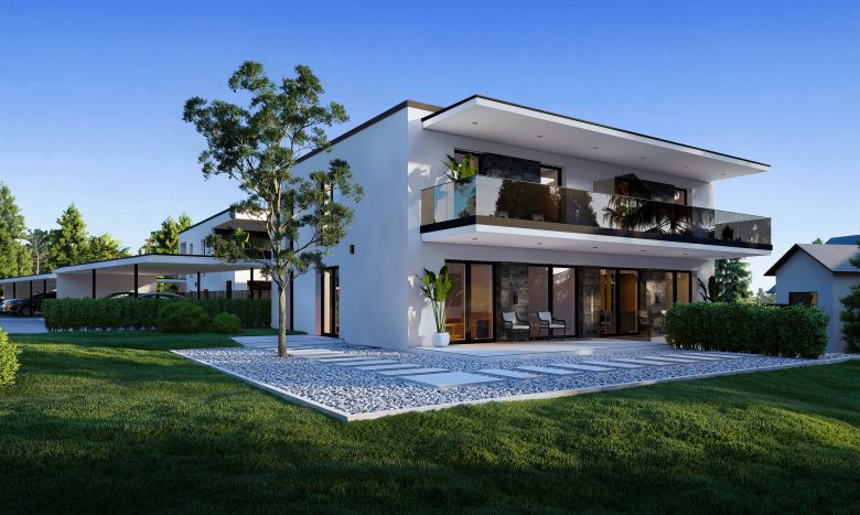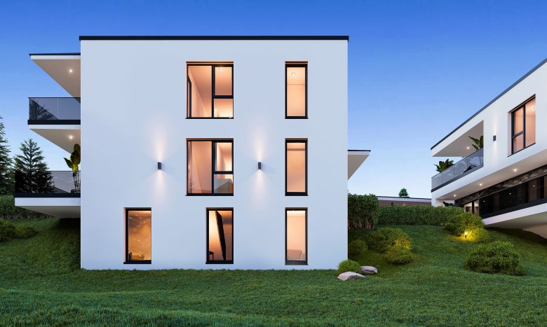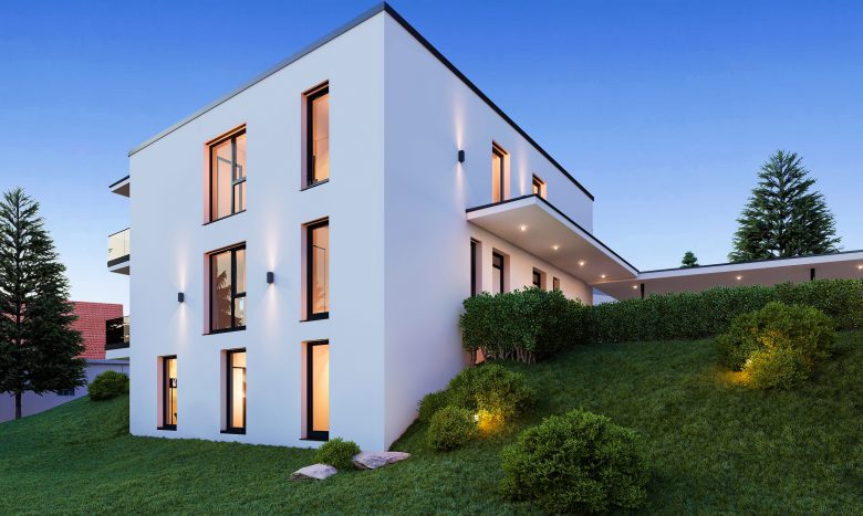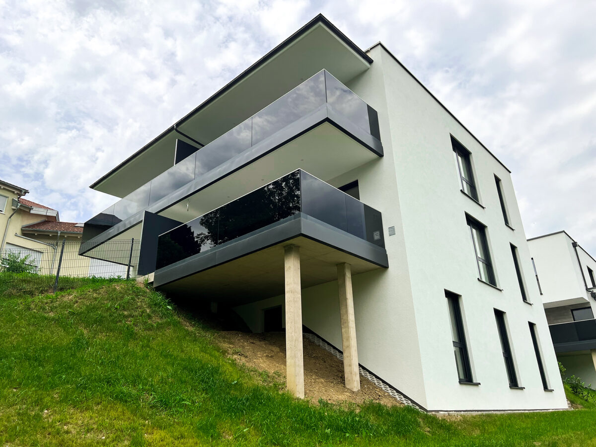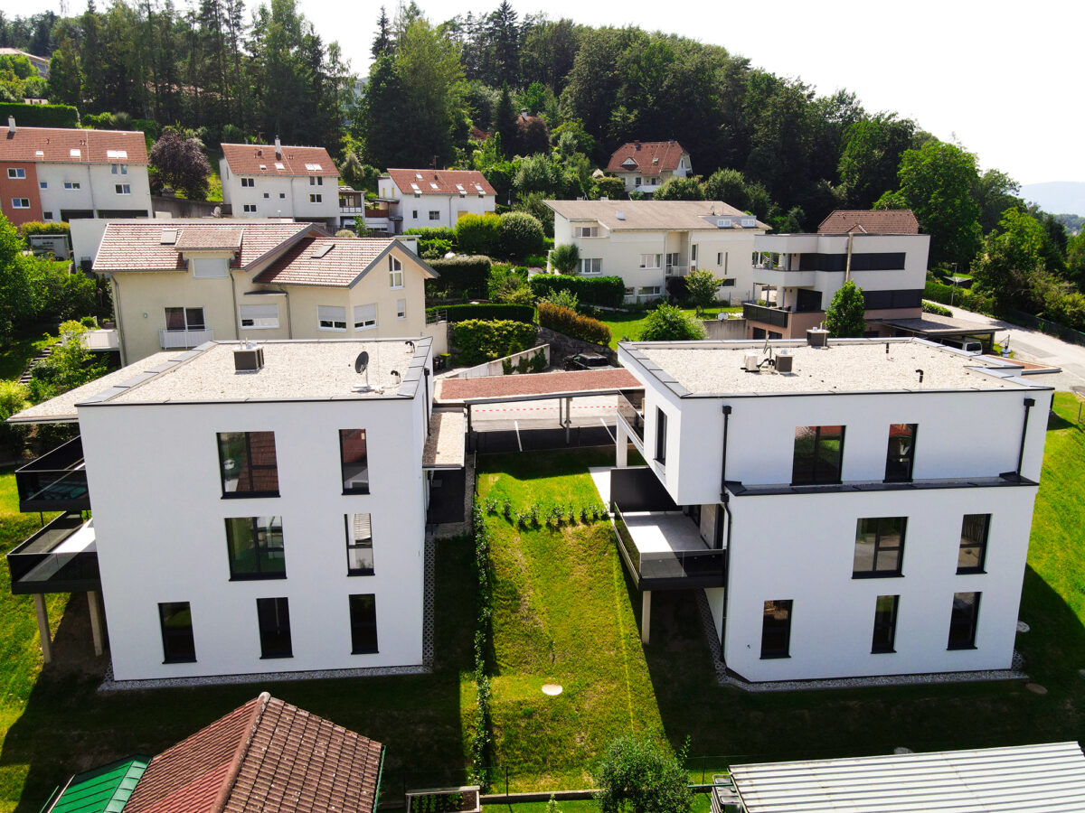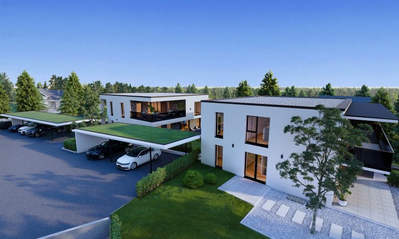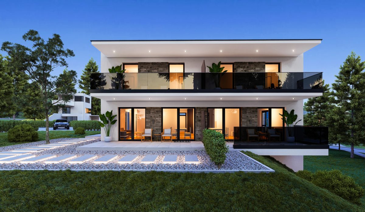 Das Objekt ist nun nicht nur bezugsfertig, sondern auch die Außenanlagen wurden abgeschlossen. Die Zufahrts- und Parkplatzbereiche wurden asphaltiert, bzw. gepflastert und die Gartenbereiche samt Einfriedung fertiggestellt.