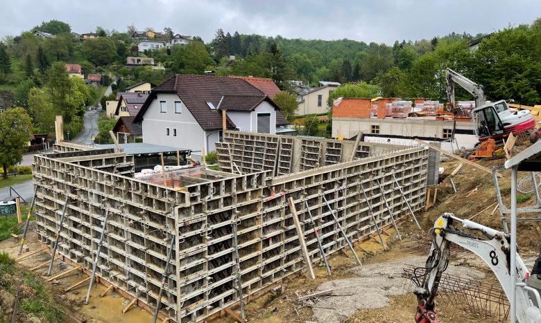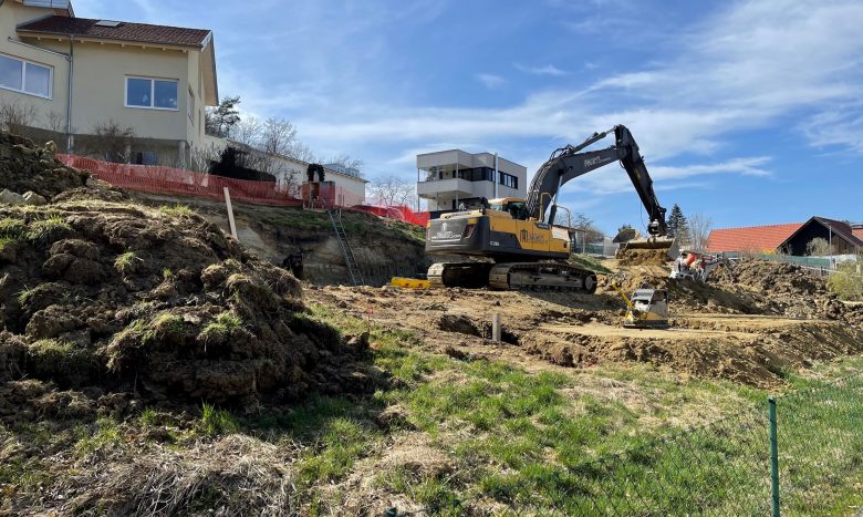 Es ist soweit! Der Startschuss für unser Wohnprojekt ist gefallen, und nun können Sie beobachten, wie zügig das Objekt seine Form annimmt. Schon bald ist die Bodenplatte betoniert und die Wände können aufgemauert werden.
