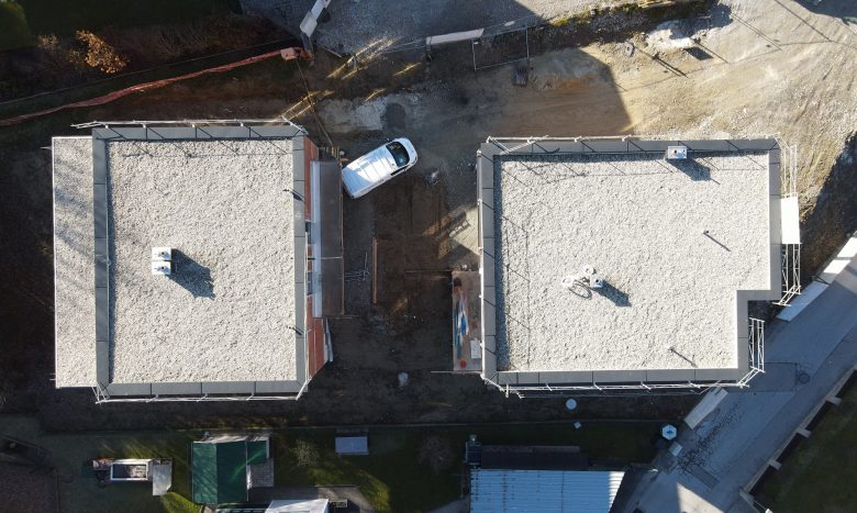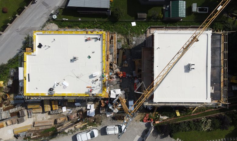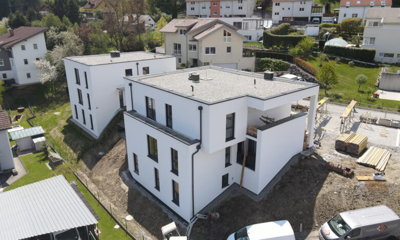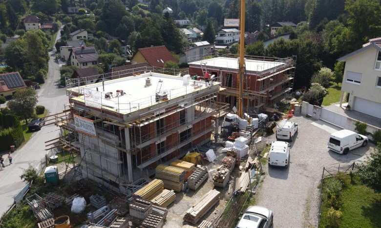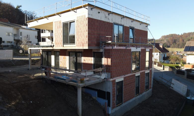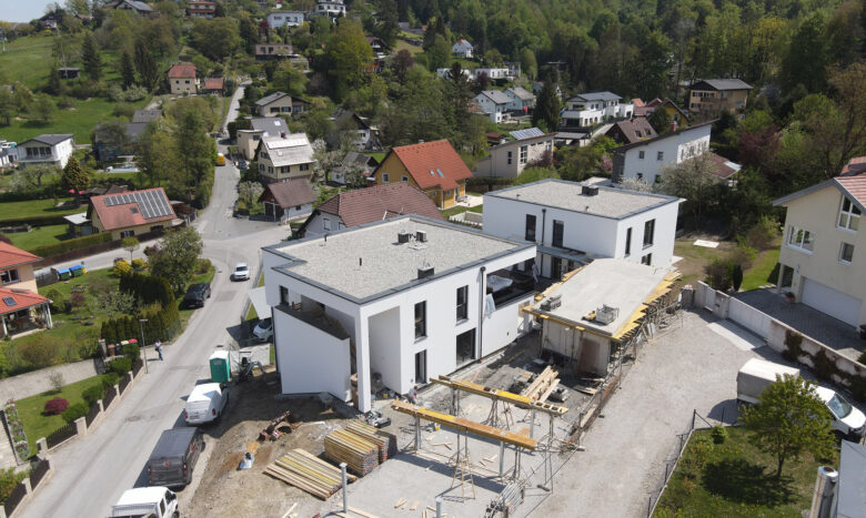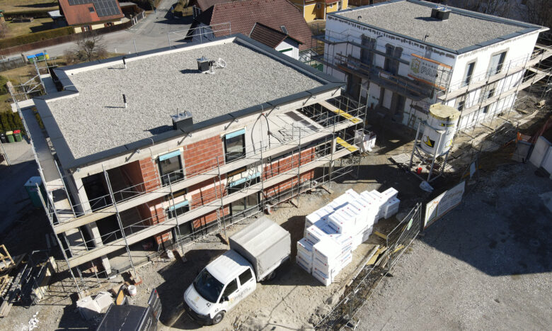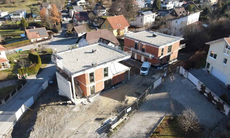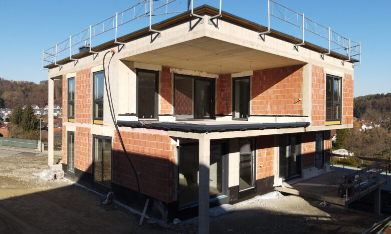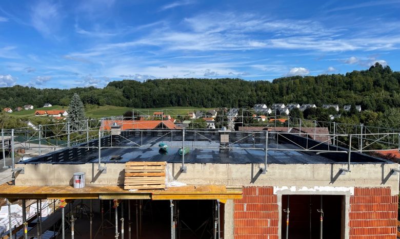 Beim vorliegenden Projekt wurden die Arbeiten am Rohbau abgeschlossen. Somit steht schon das Grundkonstrukt des Gebäudes. Darüber hinaus wurde auch das Dach abgedichtet.