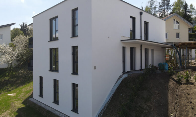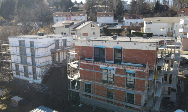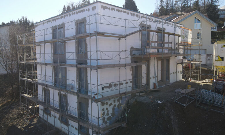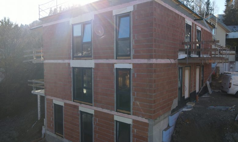 Einen weiteren großen Sprung haben wir bei unserem Wohnprojekt erreicht, und zwar wurde nun auch die Fassade fertiggestellt. Die Fenster wurden noch vor dem Innenputz eingebaut, wodurch das äußere Erscheinungsbild des Objektes langsam seine Endform annimmt.