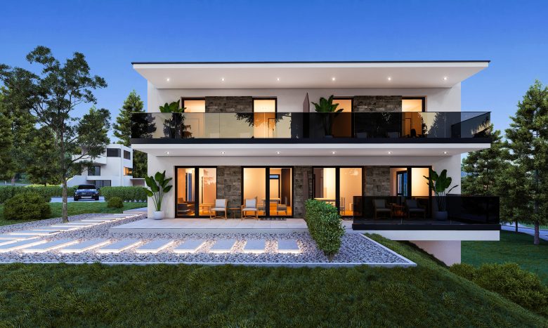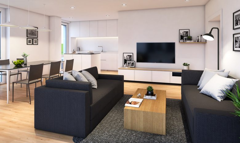 Nicht nur eine ansprechende Hülle, sondern auch ein vorzügliches Inneres, hat dieses Doppelhaus zu bieten. So wurde in der Planungsphase exemplarisch gearbeitet, sodass der Wohnraum vollends verwertet werden kann. Durch die offene Bauweise und die durchdachte Konstellation an Räumlichkeiten spricht dieses Haus ganz klar auch größere Familien an.