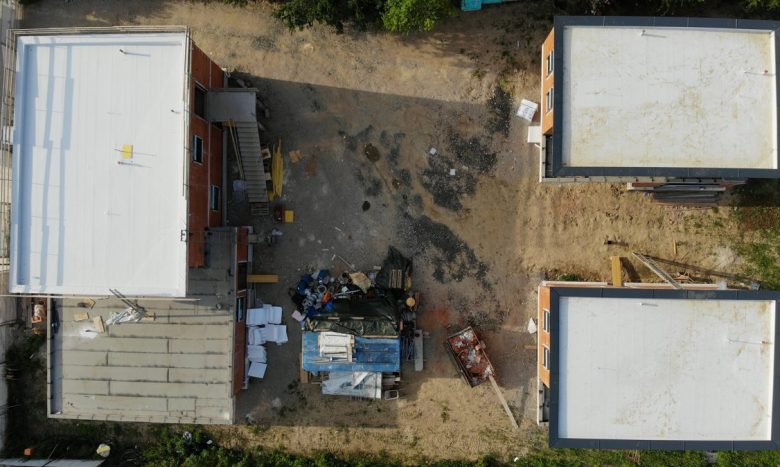 Beim vorliegenden Projekt wurden die Arbeiten am Rohbau abgeschlossen. Somit steht schon das Grundkonstrukt des Gebäudes. Darüber hinaus wurde auch das Dach abgedichtet.