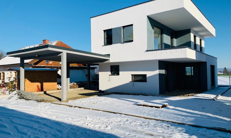 Das lässt sich über dieses Einfamilienhaus unbestritten behaupten. Modernes Design, effiziente Raumausnützung und bewährte Ziegelmassivbauweise – ergeben ein Eigenheim für viele Jahre in Zufriedenheit.