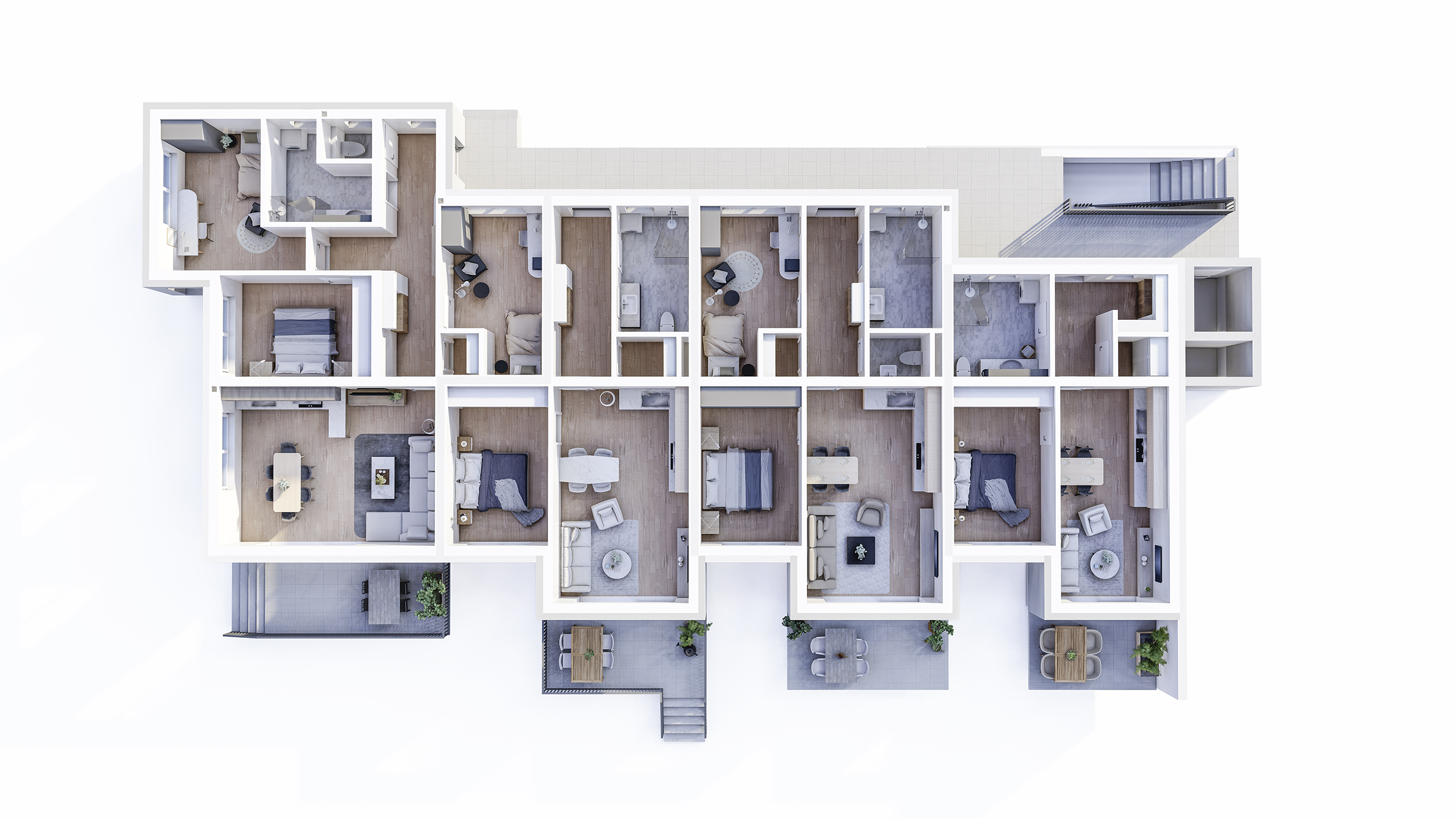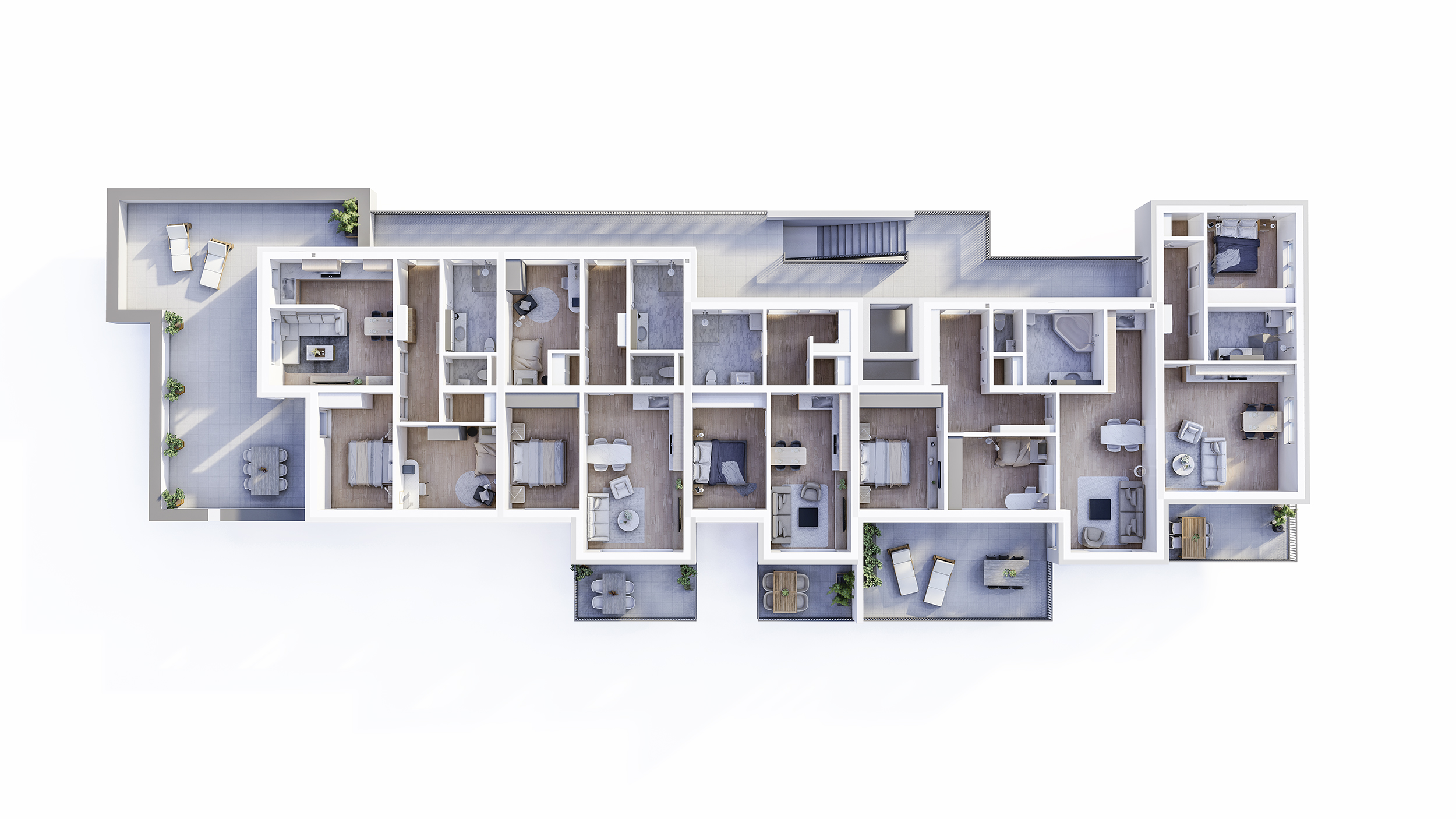 Und diese können sich sehen lassen! Das ausgefallene Wohnhaus kommt auf den Renderings ganz besonders gut zur Geltung. Und jene, die ein recht schwaches Vorstellungsvermögen haben, können sich jetzt vollends von der wunderschönen Wohnanlage berieseln lassen. Nähere Details zum Projekt findet man auf der eigenen Projektseite.