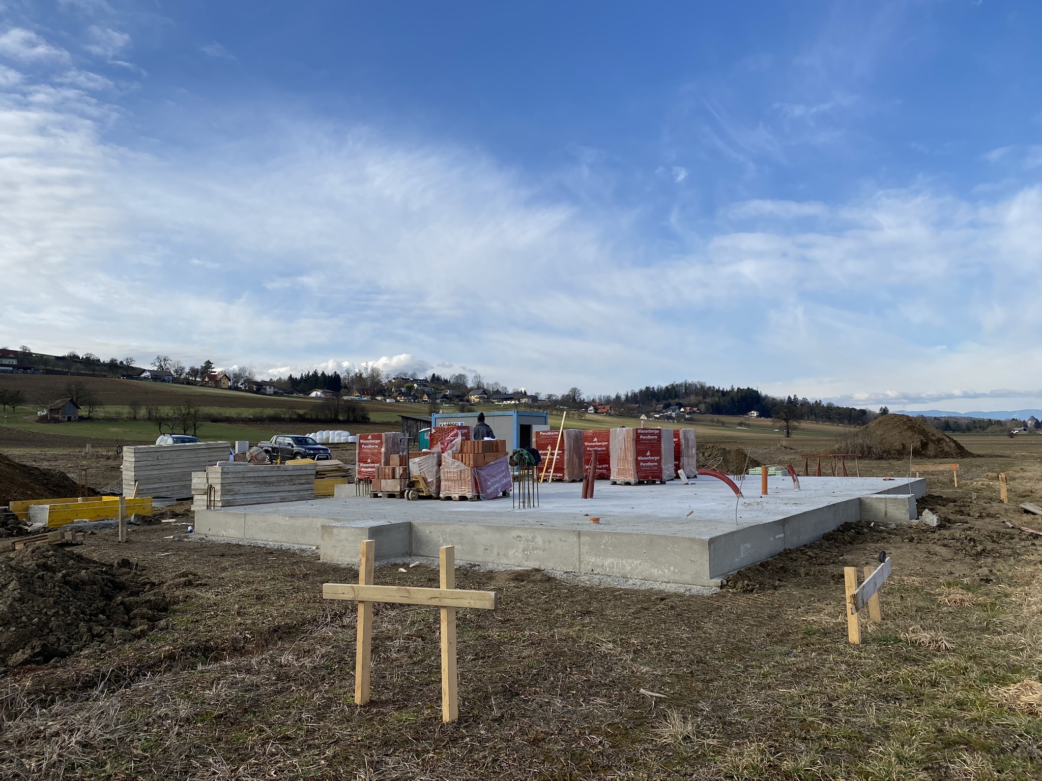 Gerade noch wollten wir den Baubeginn für unser langersehntes Dobl-Projekt in unserer News-Rubrik verkünden, und schon sprieß die Bodenplatte wie ein Pilz aus dem Boden heraus.