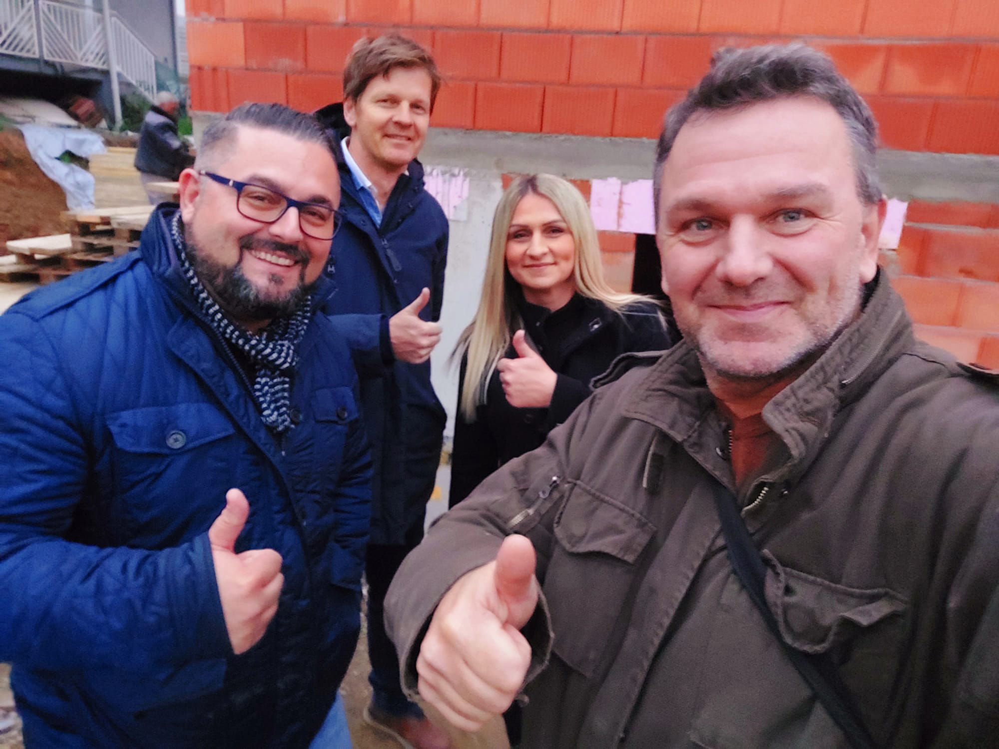 Alles in allem war der erfahrene Profi mit unserer bisherigen Leistung sehr zufrieden, was sich auch vom untenstehenden Gemeinschaftsfoto ableiten lässt. Jedenfalls freuen wir uns bereits auf die nächste Baustellenprüfung, von der wir selbstverständlich wieder berichten werden.