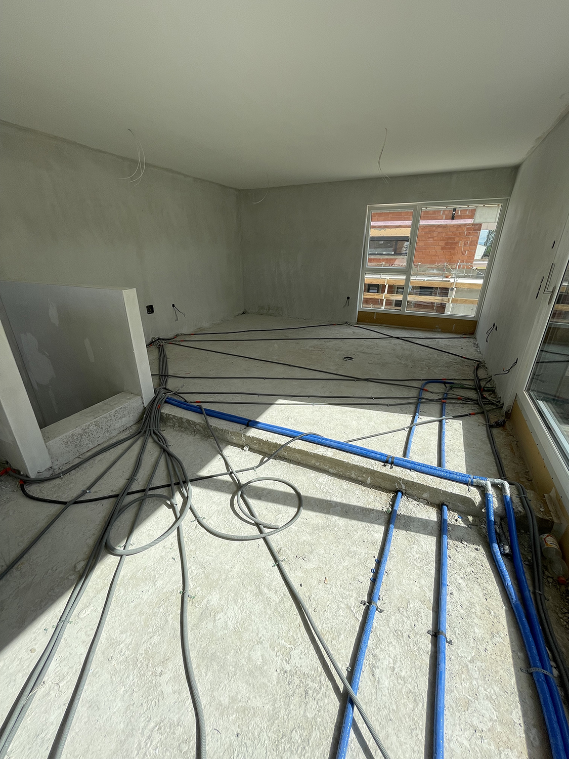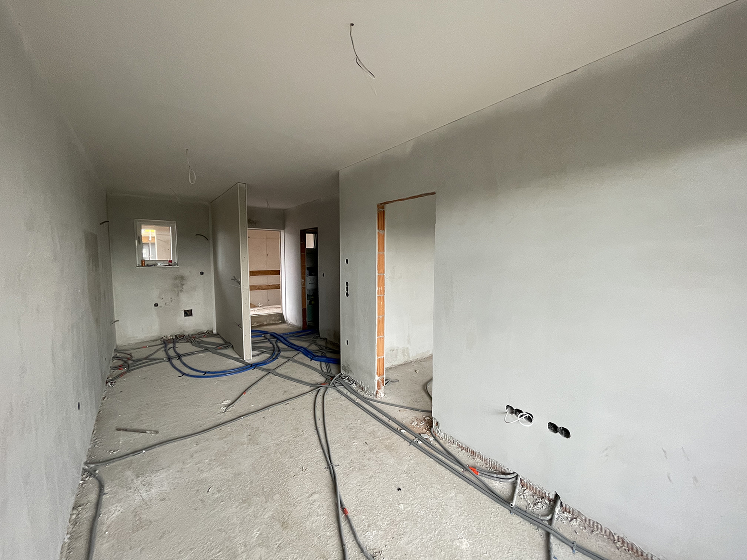 Zwar umfasst der Meilenstein Rohinstallationen selbstverständlich alle Elektro- und HKL-Installationen in der Rohbauphase, allerdings wurde seit der Fertigstellung des Rohbau weitaus mehr Arbeit geleistet. Neben den von außen erkennbaren Fenster- und Balkonelementen wurden im Innenbereich bereits der Innenputz und Estrich fertiggestellt. Wir sind grundsätzlich in der Herstellung immer ein paar Schritte weiter, als es die Baufortschrittsmeilensteine erfordern.