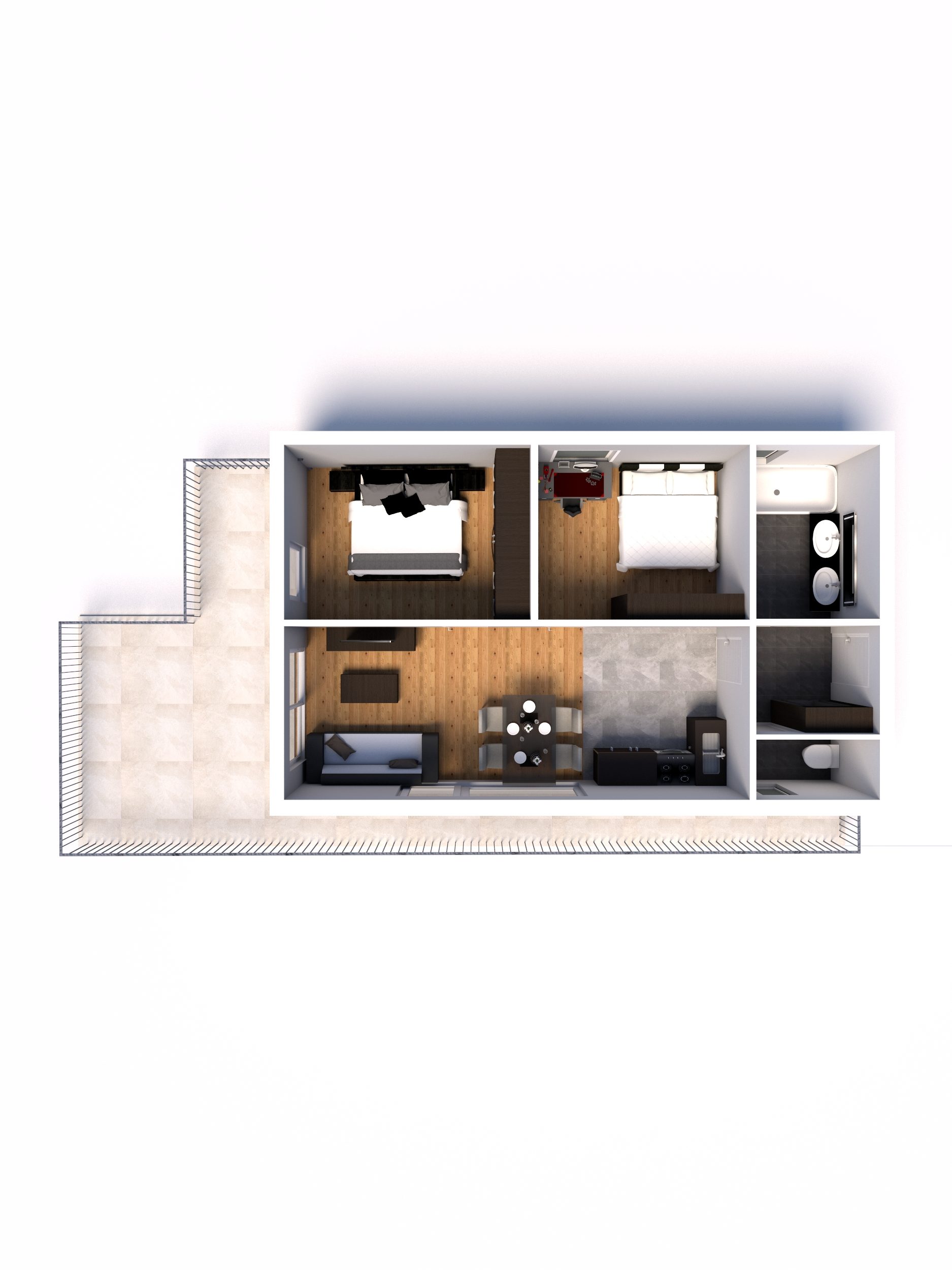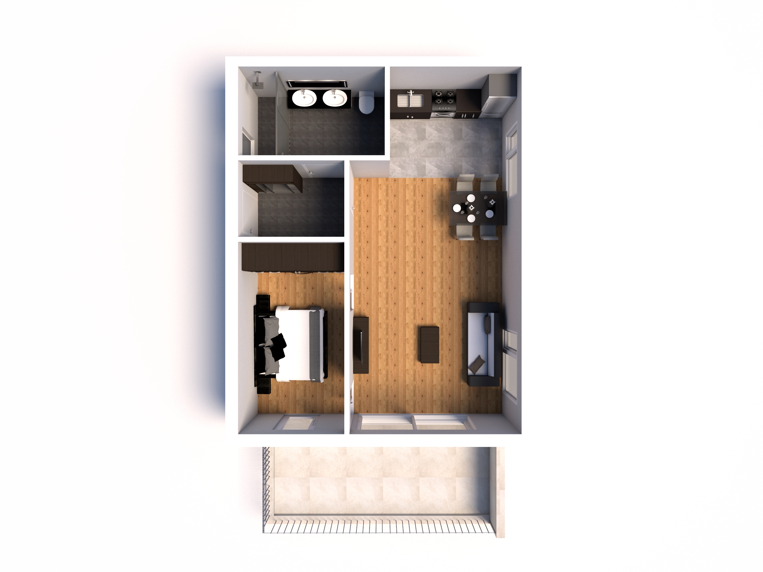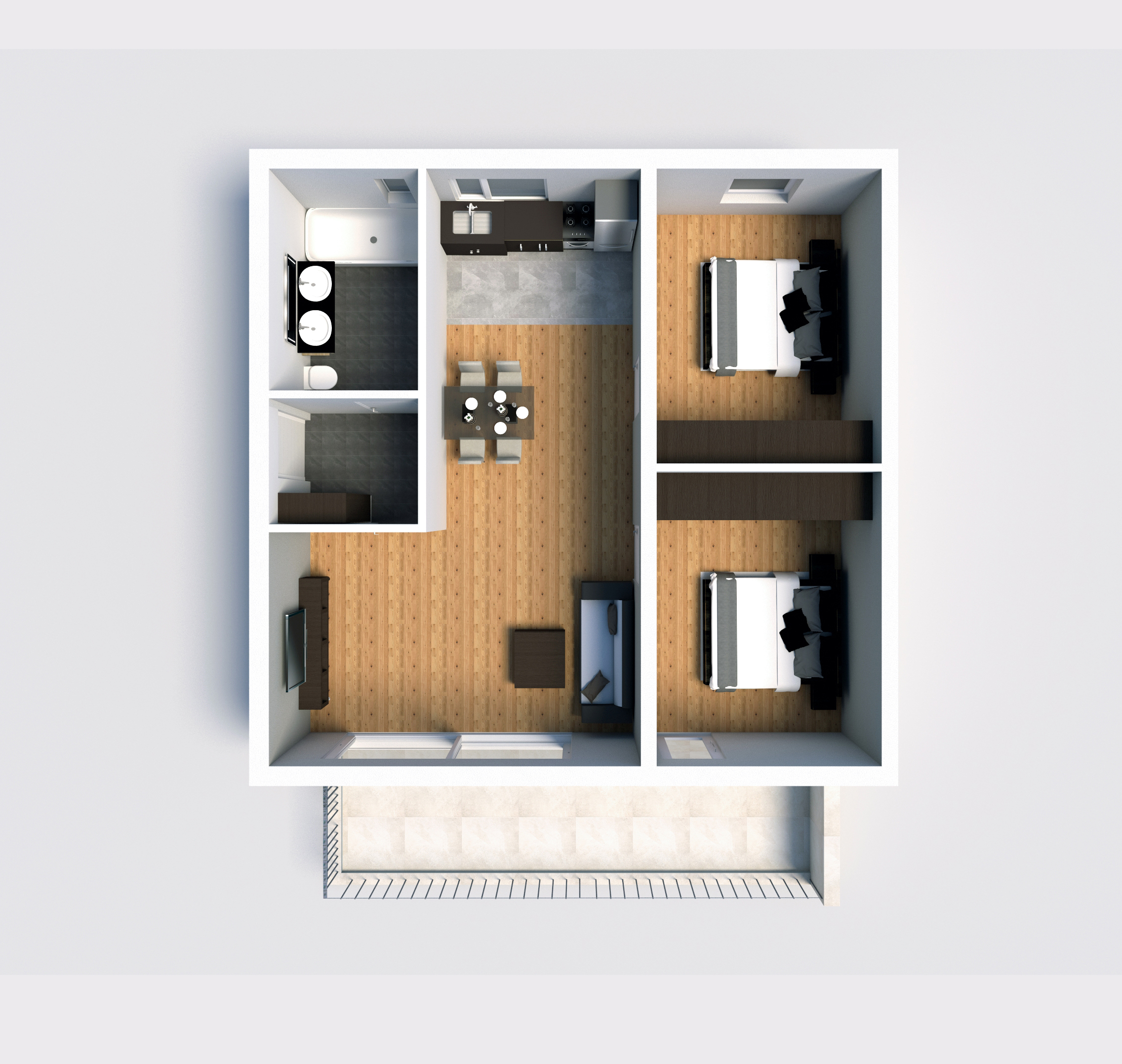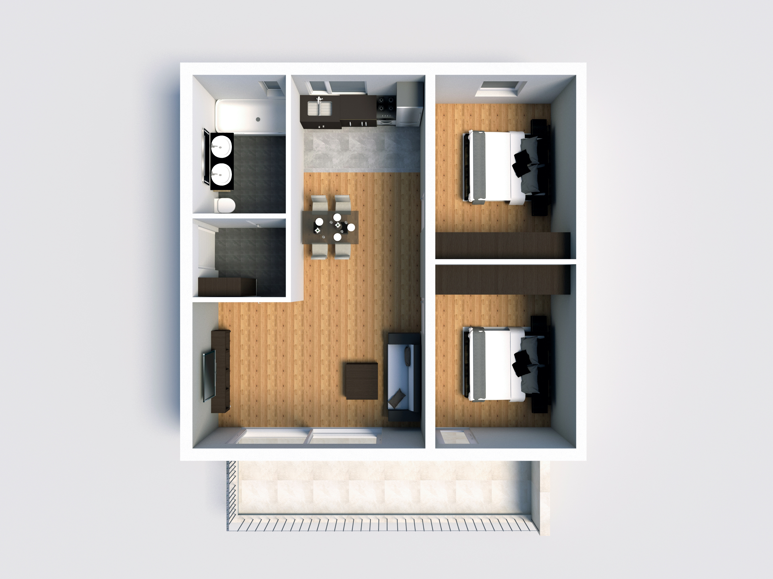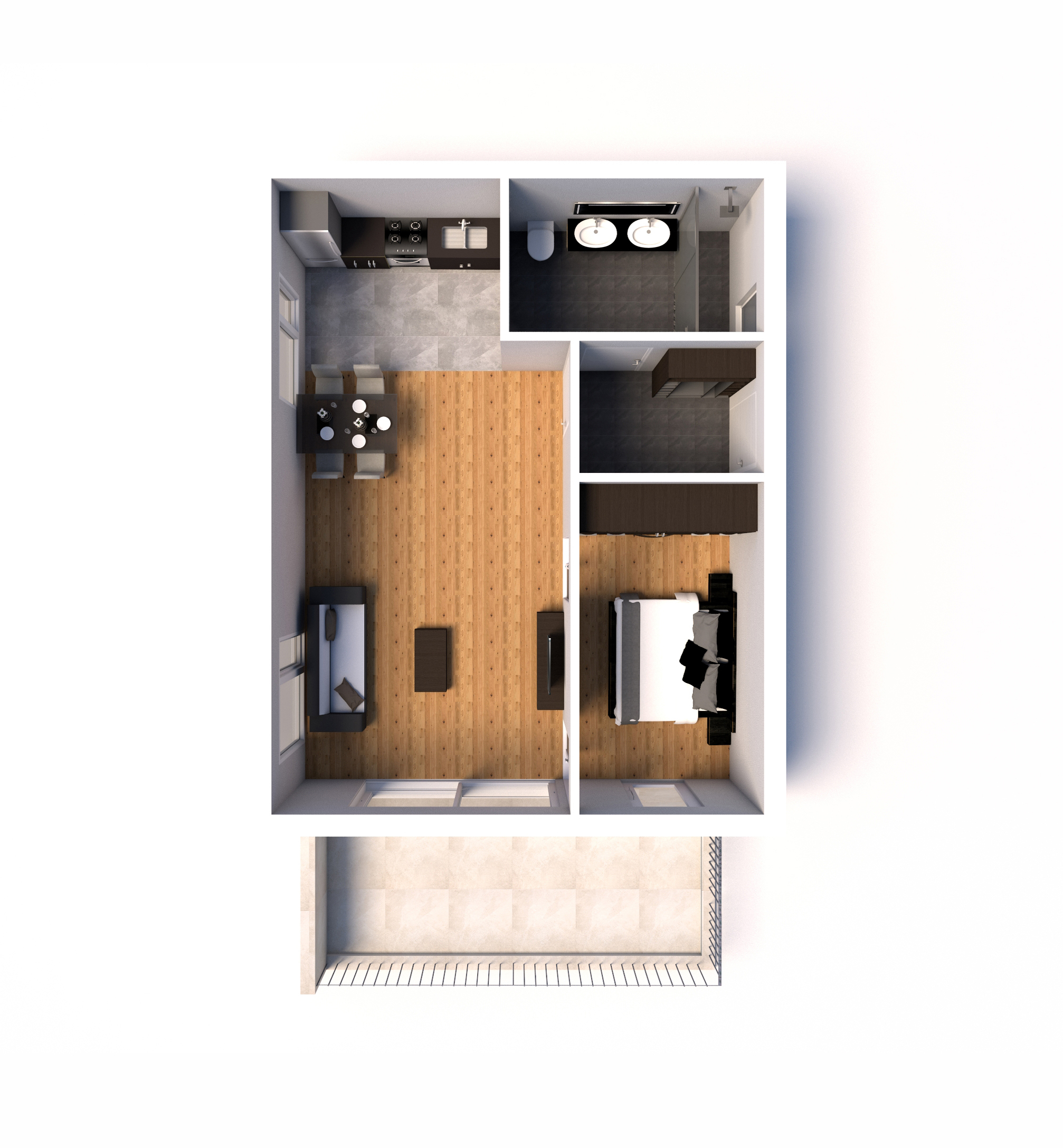 Dabei wurde jede Wohnung für sich einzeln visualisiert, sodass man sich bereits gedanklich entsprechend hineinfühlen kann. Bleibt nur noch anzumerken, dass die Einrichtungsgegenstände als Vorschläge zu werten und nicht als Bestandteil der Wohnung zu sehen sind. Bei den Böden hingegen handelt es sich sehr wohl um Produkte aus unserer Ausstattungspalette. Viel Spaß beim Durchklicken!