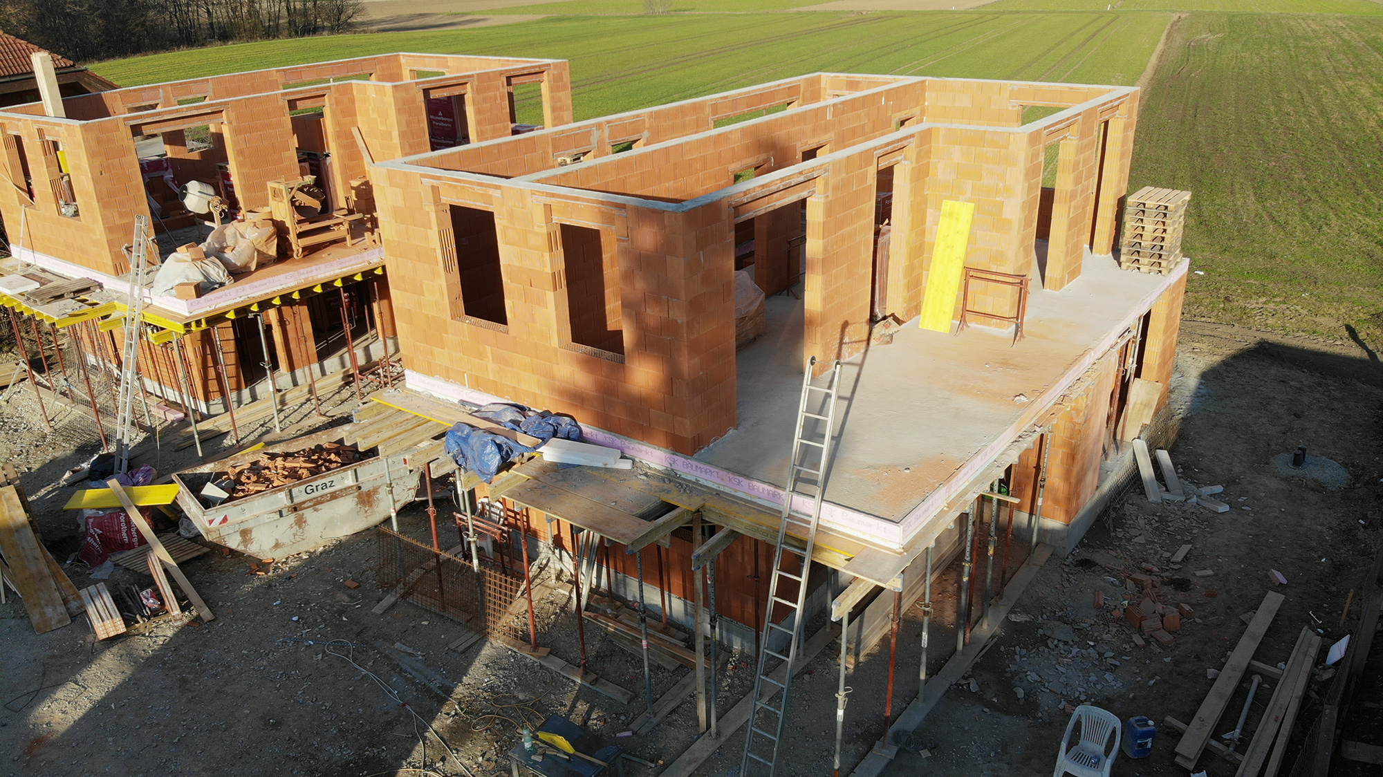 Projekt-Update: Kainach/Weitendorf – Mitterweg 4 – Aufmauerung der Obergeschosse!