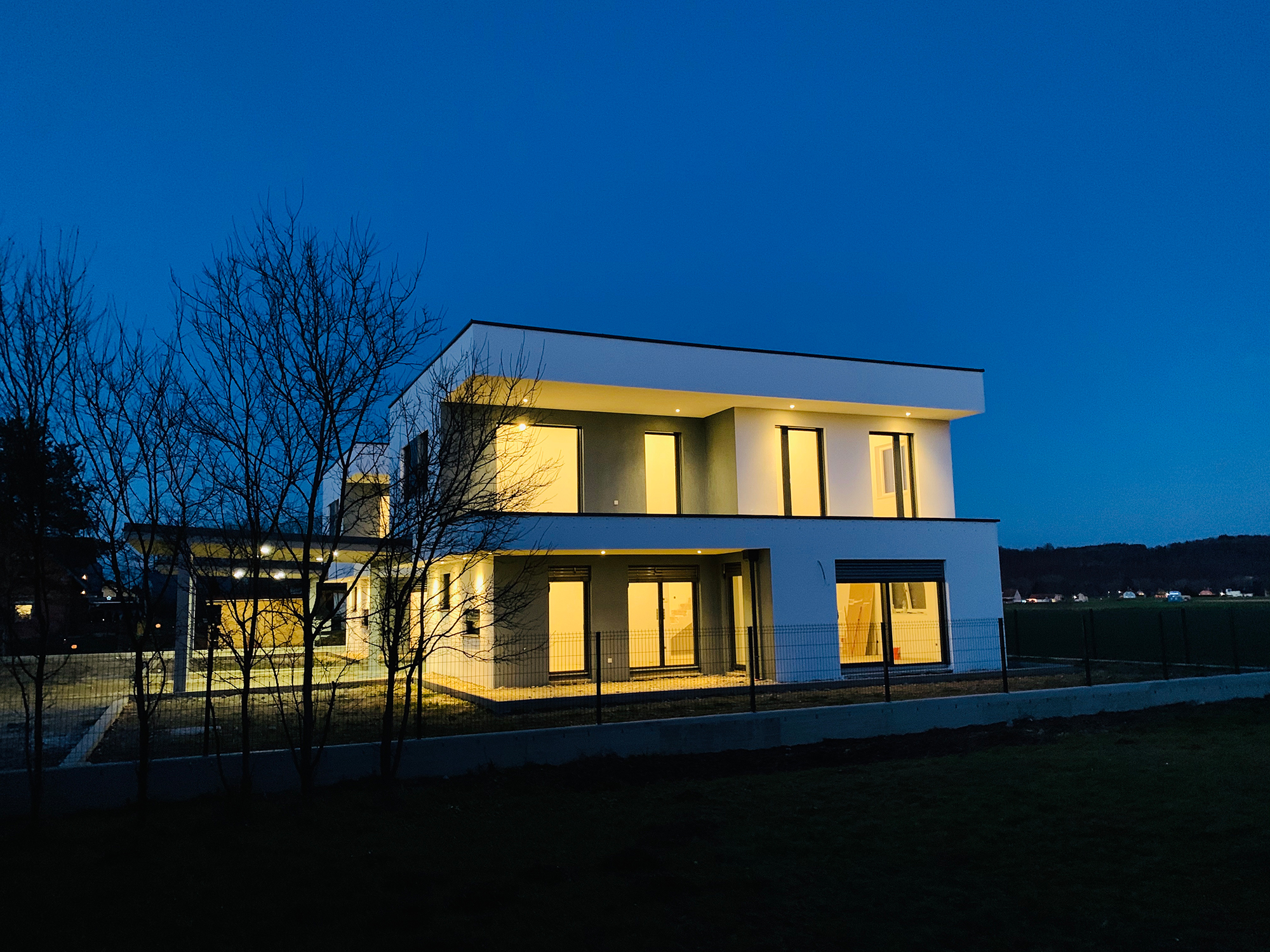 Nachdem die meisten Weihnachtstbäume nach wie vor beschmückt und beleuchtet die Nacht erhellen, wollten wir ebenso die Gunst der Stunde nutzen, und unsere Einfamilienhäuser im Mitterweg aufleuchten lassen. Wobei ganz im Gegensatz zur weihnachtlichen Zeitperiode bleiben unsere Einfamilienhäuser das ganze Jahr über hell.