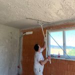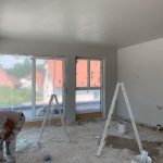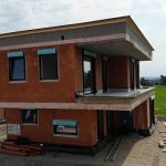 Angefangen bei den beiden Einfamilienhäusern ist der Innenputz nun auch im 3er-Wohnhaus abgeschlossen worden. Dank der zuvorkommenden Wetterbedingungen trocknen die Wände auch schon sehr schnell.