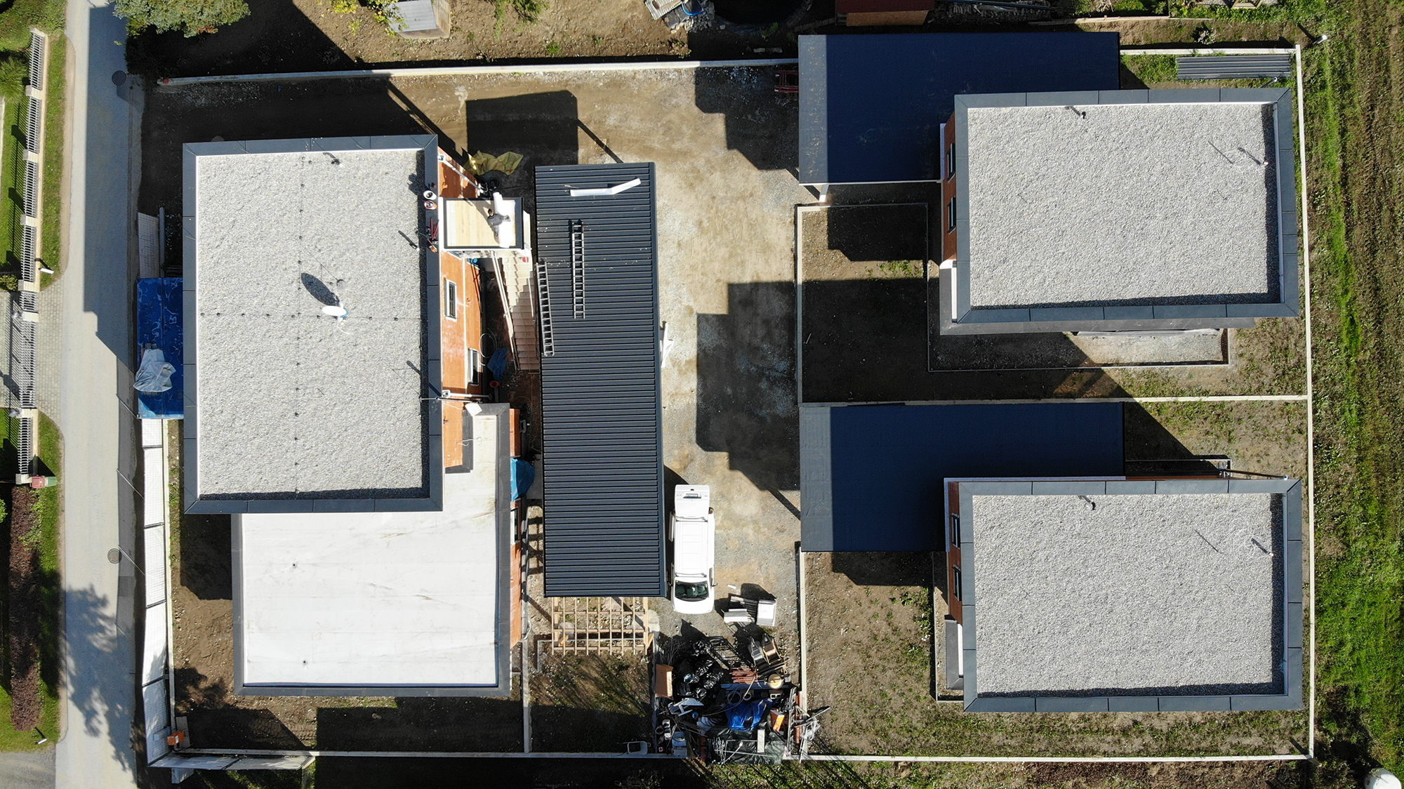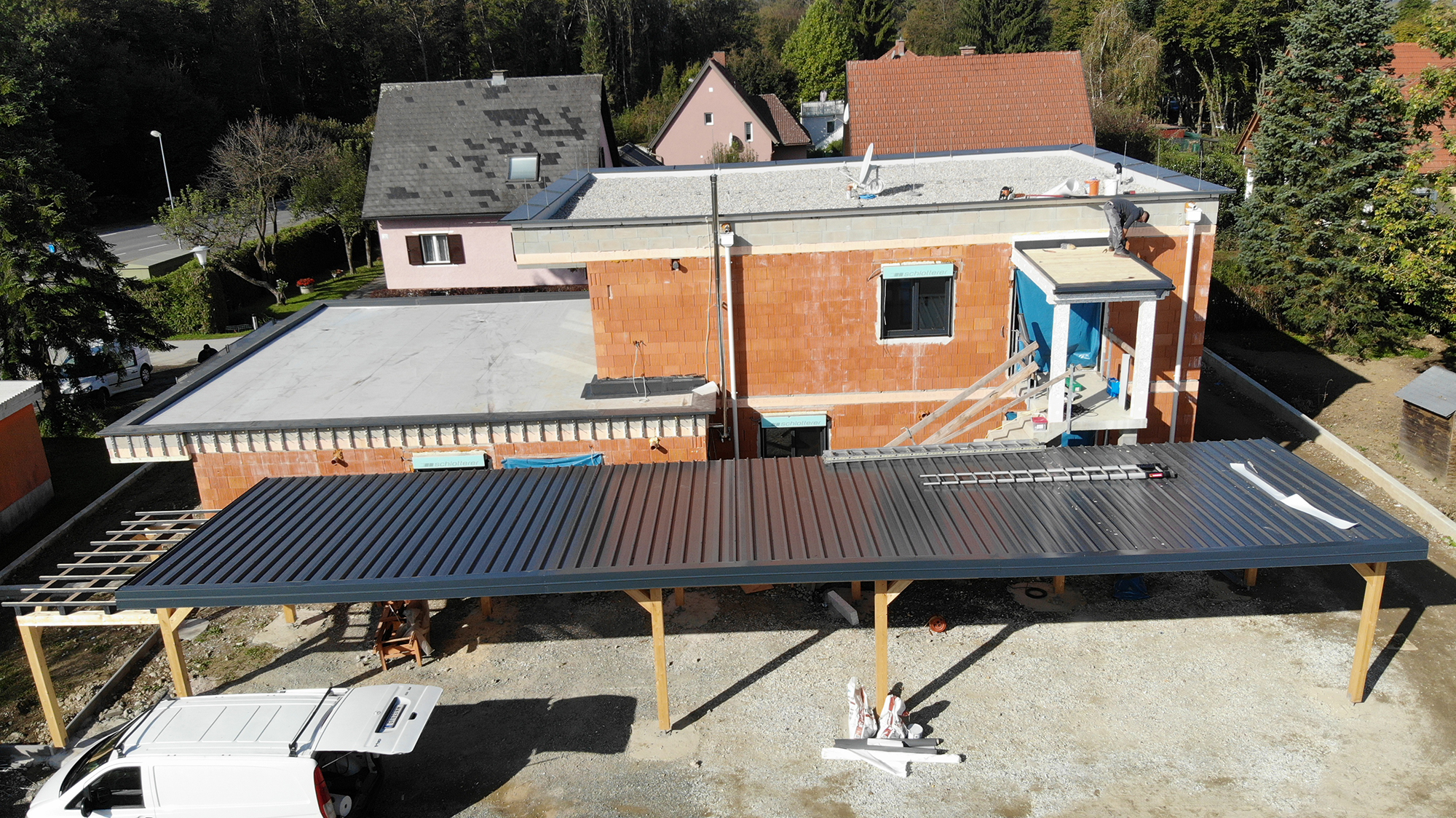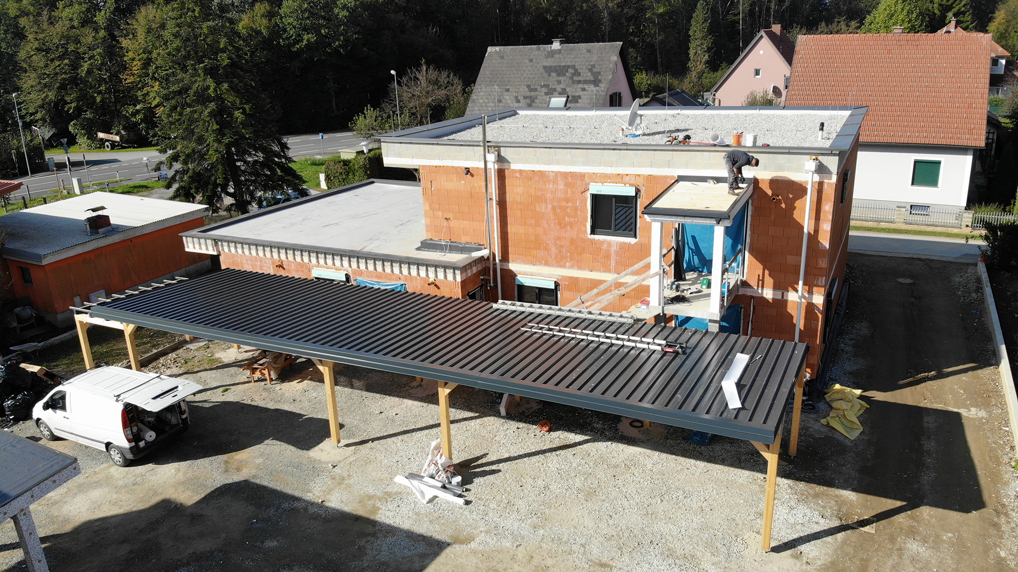 Inzwischen wurden die Carports, die einerseits den Einfamilienhäusern und andererseits der Wohngemeinschaft zugeordnet sind, erfolgreich abgeschlossen. Zwar wird demnächst noch der große gemeinschaftliche Carport farblich seinen Final-Anstrich bekommen, und es werden noch hier und da Spenglerbleche angebracht werden, aber grundsätzlich gilt diese Mission als abgeschlossen.