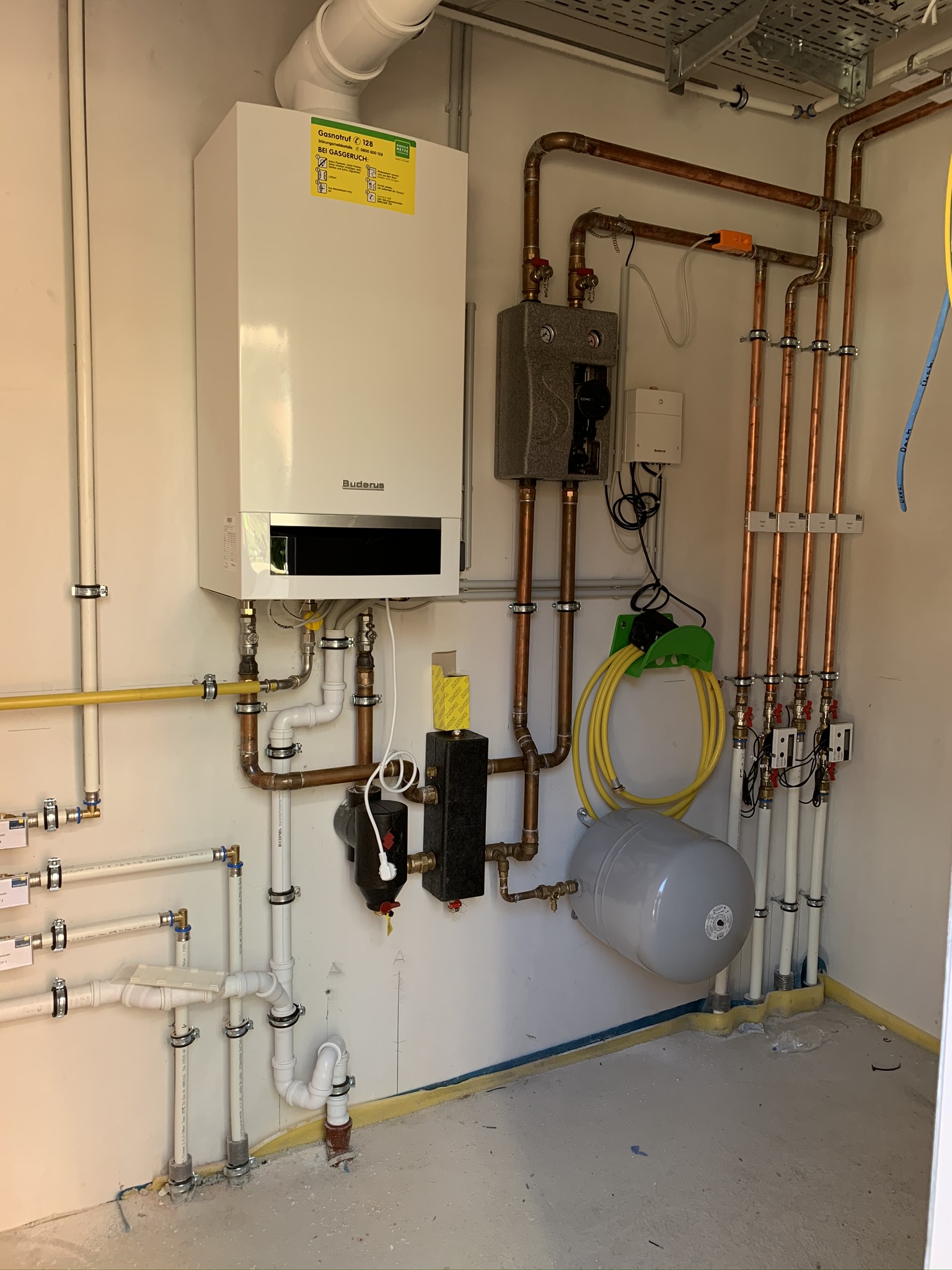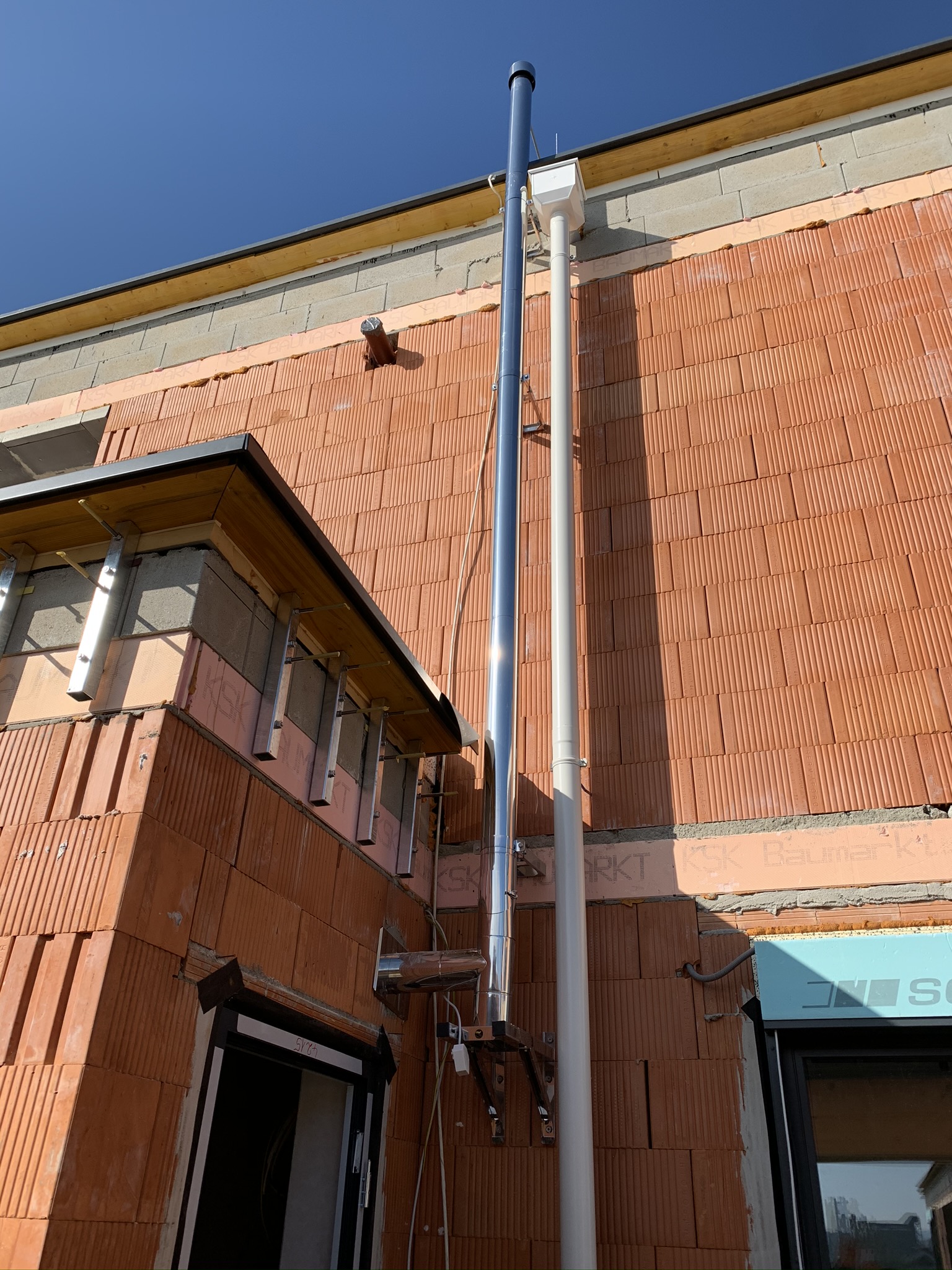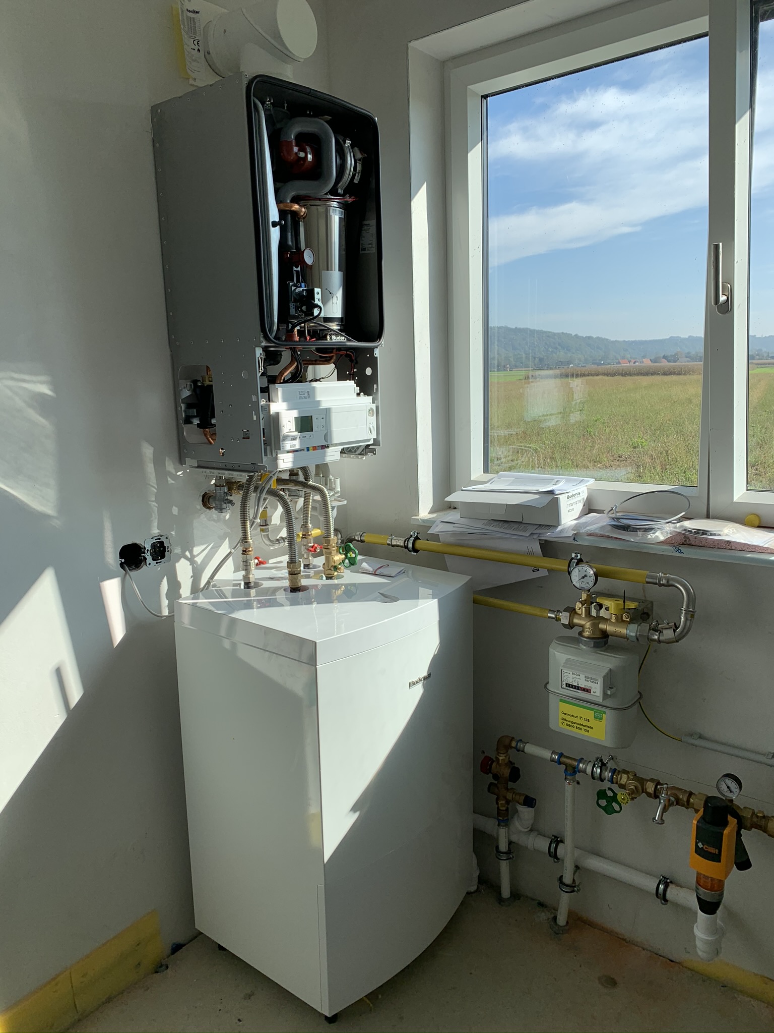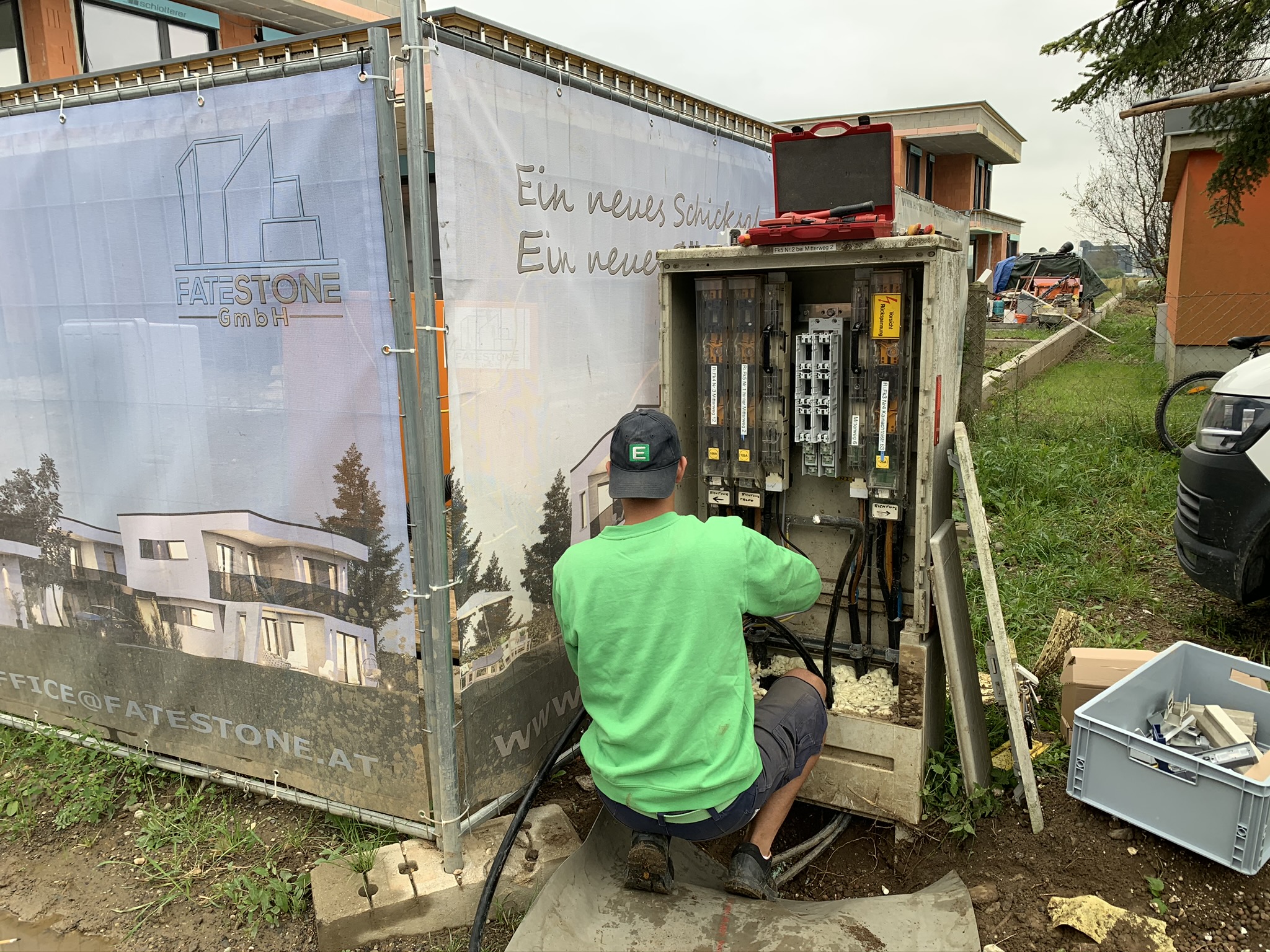 Darüber hinaus haben wir den Baustrom endlich abhängen und die Hauptleitungen, die in die jeweiligen Technikräume führen, mit Strom bespeisen können. Somit haben wir nun Strom in allen Objekten, wodurch sich natürlich weitere Aufgaben ergeben. Beispielsweise ist nun, nachdem unser Partner-Installateur Krobath seine Arbeiten an der Heizanlage gänzlich abgeschlossen hat, die Inbetriebnahme der Gas-Heizung möglich. Selbstverständlich ist uns auch die Versorgung der Technikräume mit Gas und damit der Anschluss an das Gas-Netz ebenso gelungen, sodass der Inbetriebnahme der Heizungsanlage in dieser Woche nichts mehr im Weg steht.