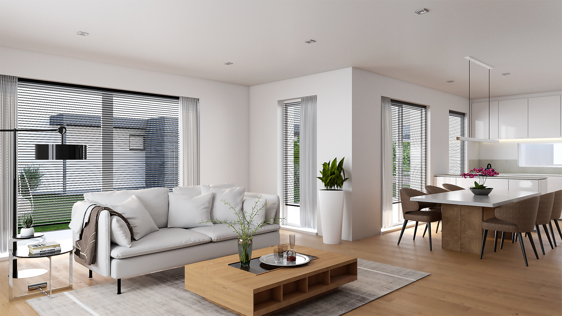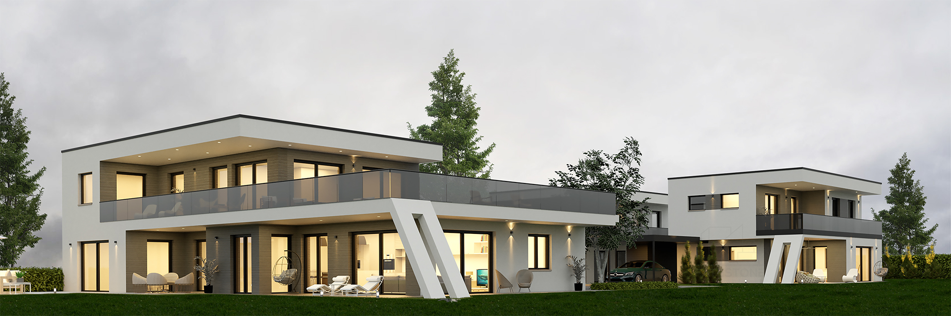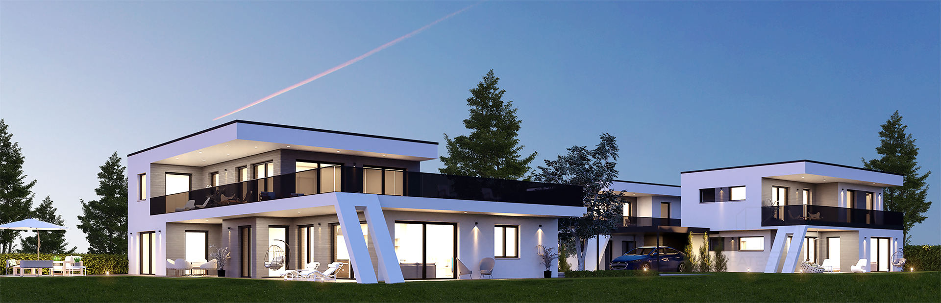 Im Großen und Ganzen realisieren wir unsere Objekte im Einklang mit den Visualisierungen. Dementsprechend ist die schlüsselfertige Version der Wohnobjekte optisch ohne Weiteres mit ihrer digitalen Vorlage gleichzusetzen. Doch solange wir auf den Vorher-Nachher-Vergleich warten, können Sie sich schon mal die Visualisierungen zu Gemüte führen:
