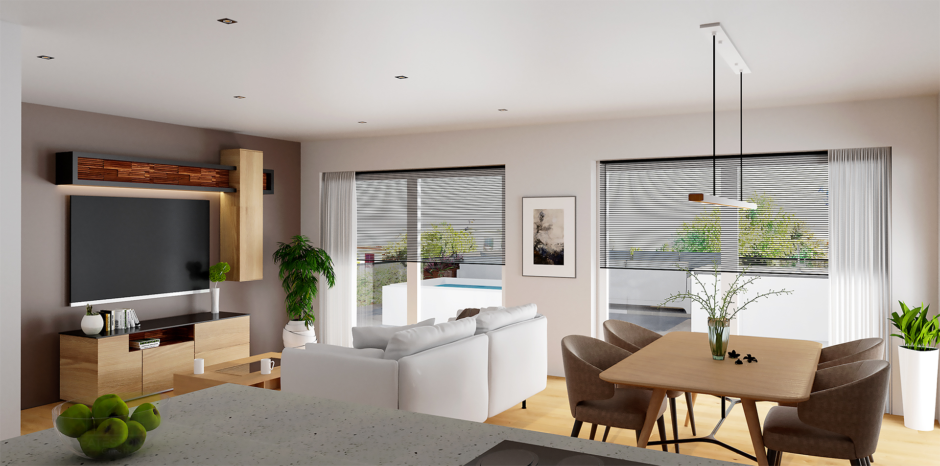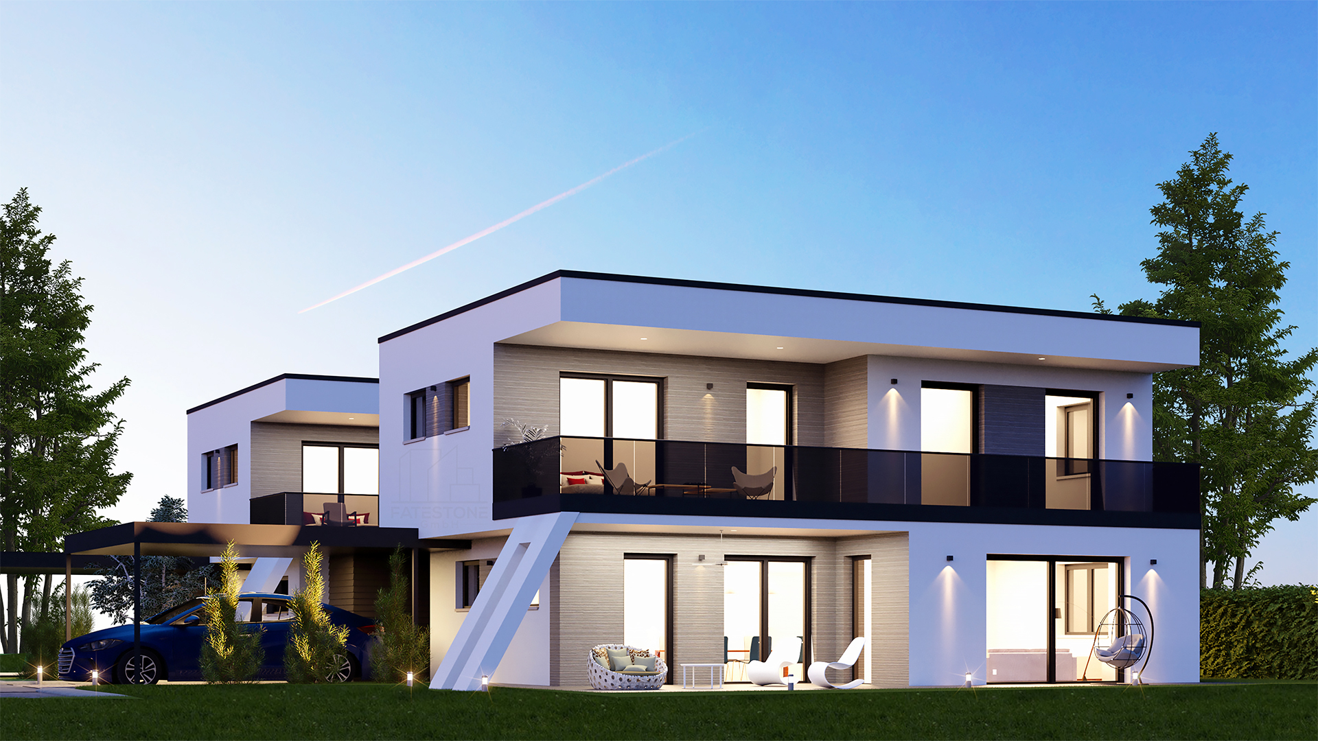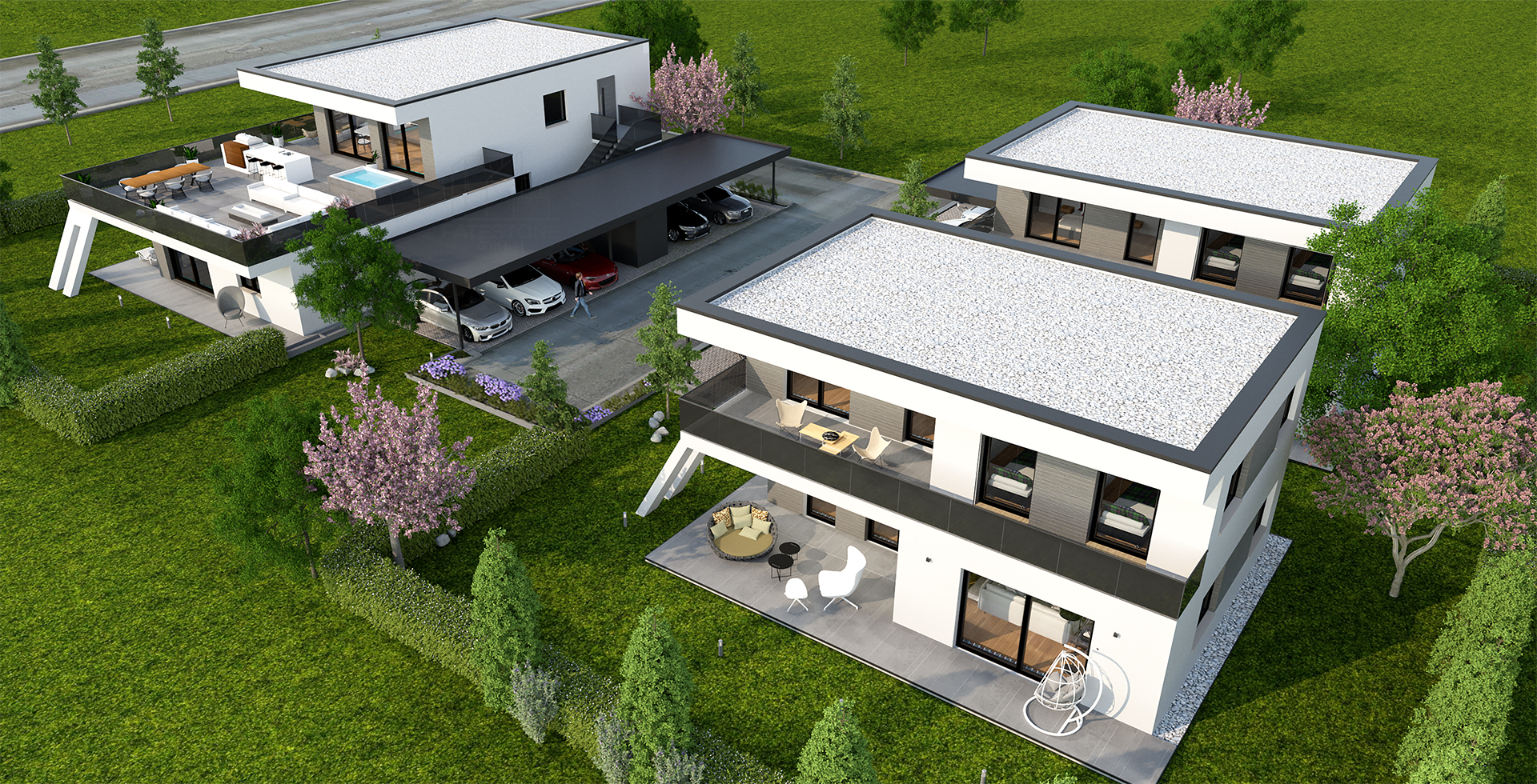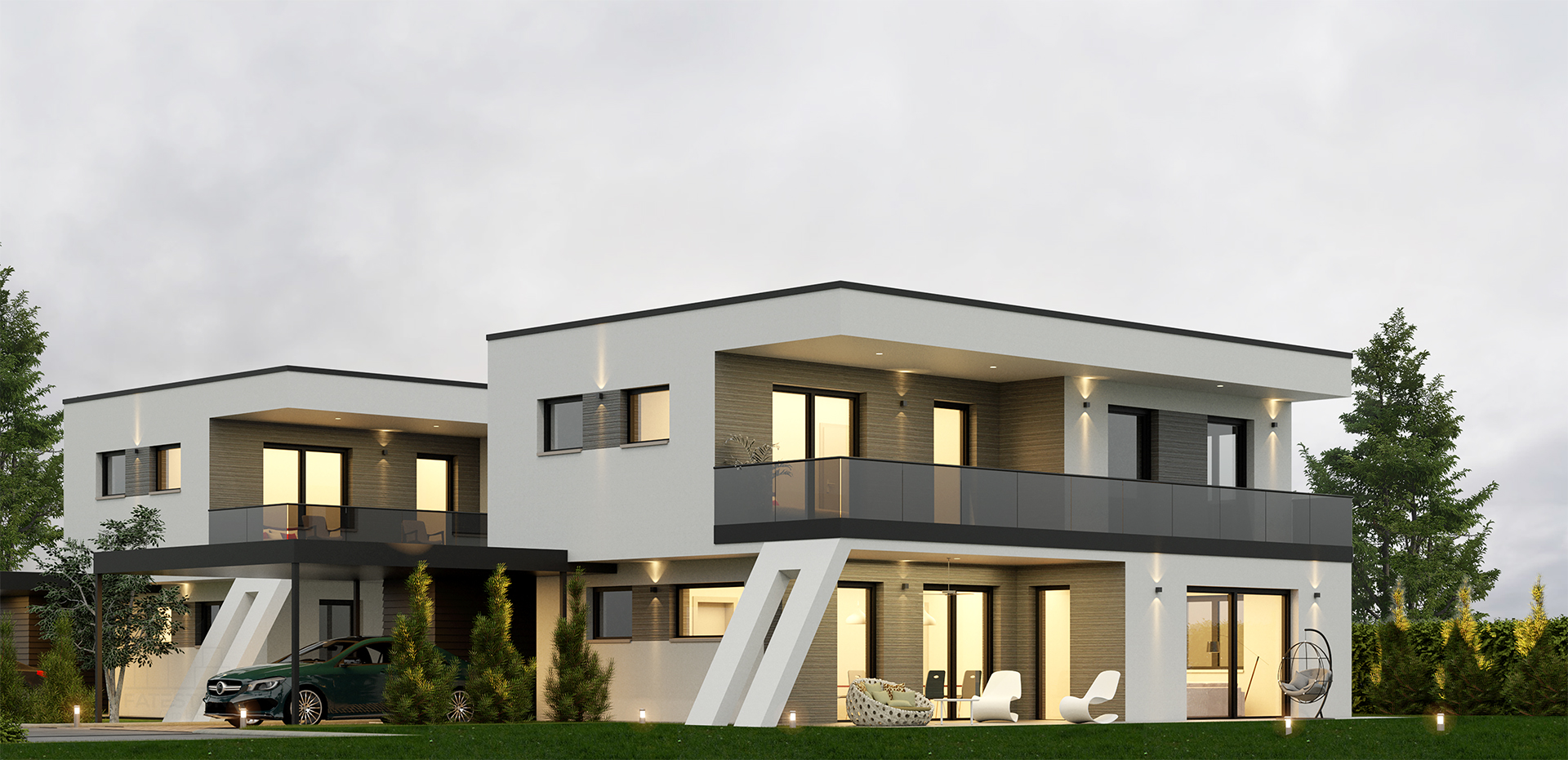 Im Großen und Ganzen realisieren wir unsere Objekte im Einklang mit den Visualisierungen. Dementsprechend ist die schlüsselfertige Version der Wohnobjekte optisch ohne Weiteres mit ihrer digitalen Vorlage gleichzusetzen. Doch solange wir auf den Vorher-Nachher-Vergleich warten, können Sie sich schon mal die Visualisierungen zu Gemüte führen: