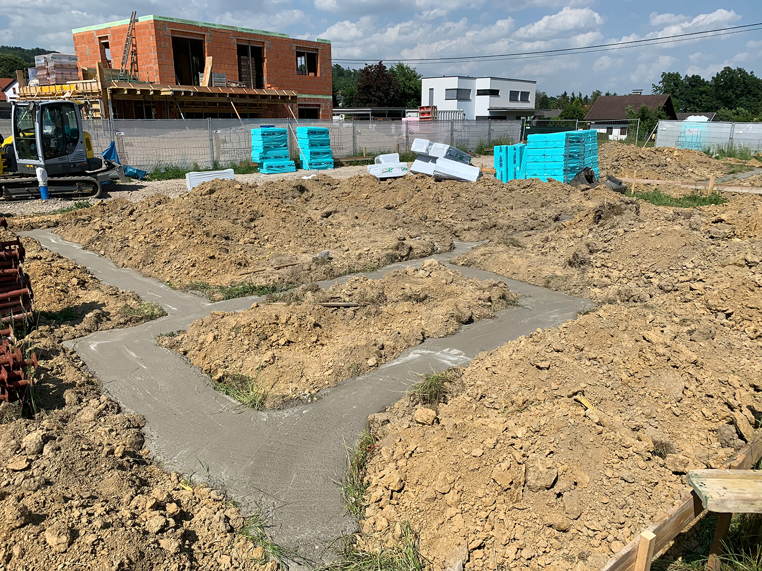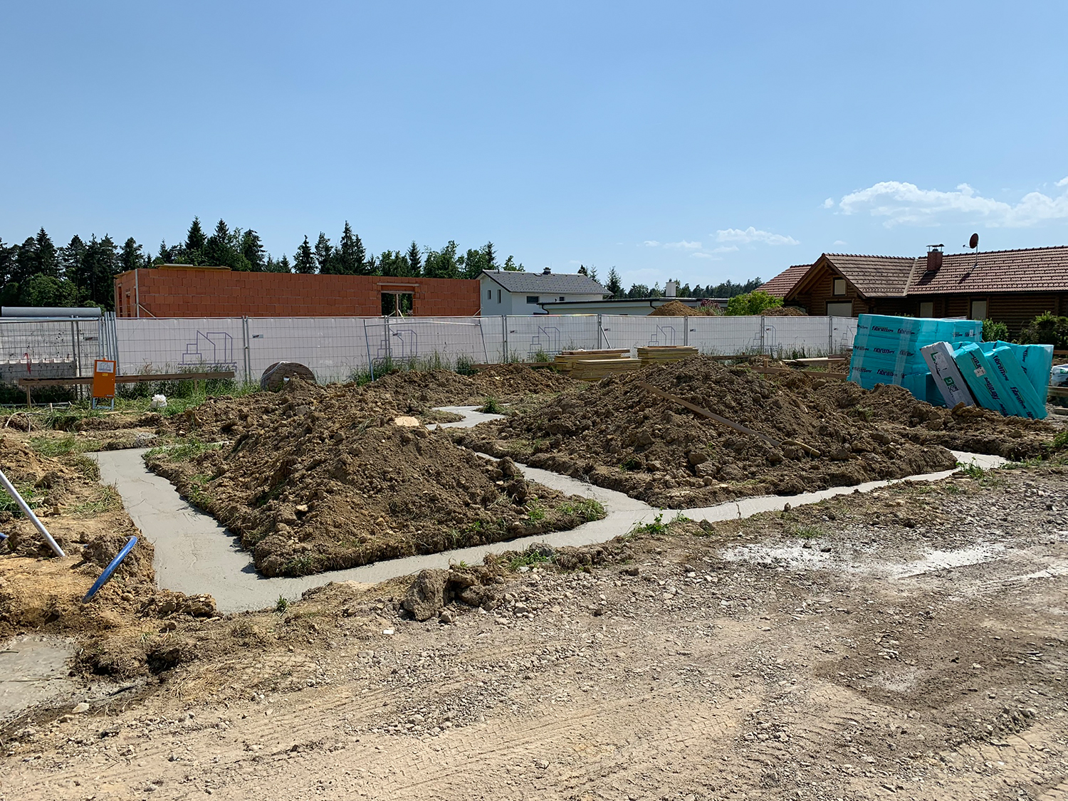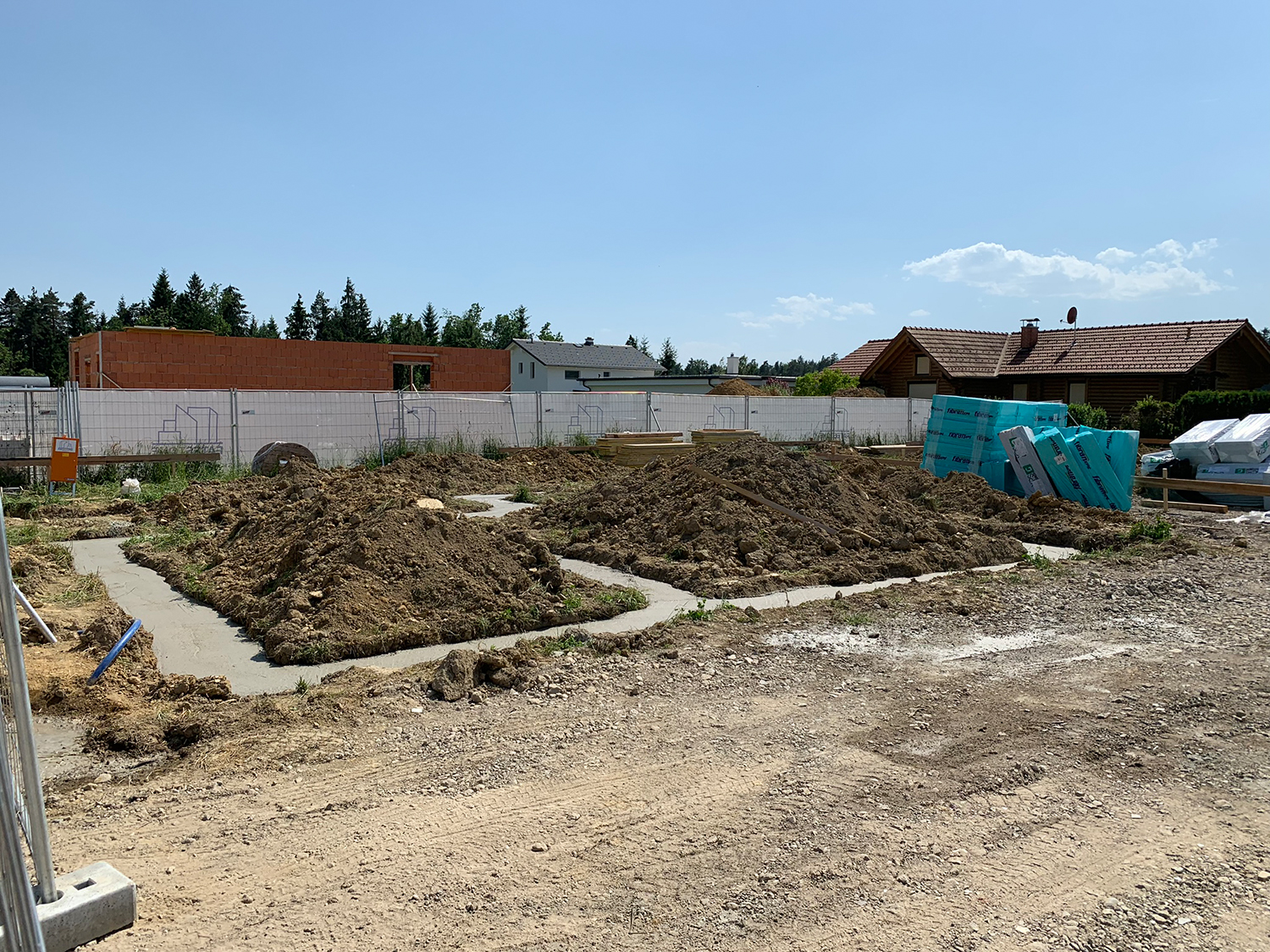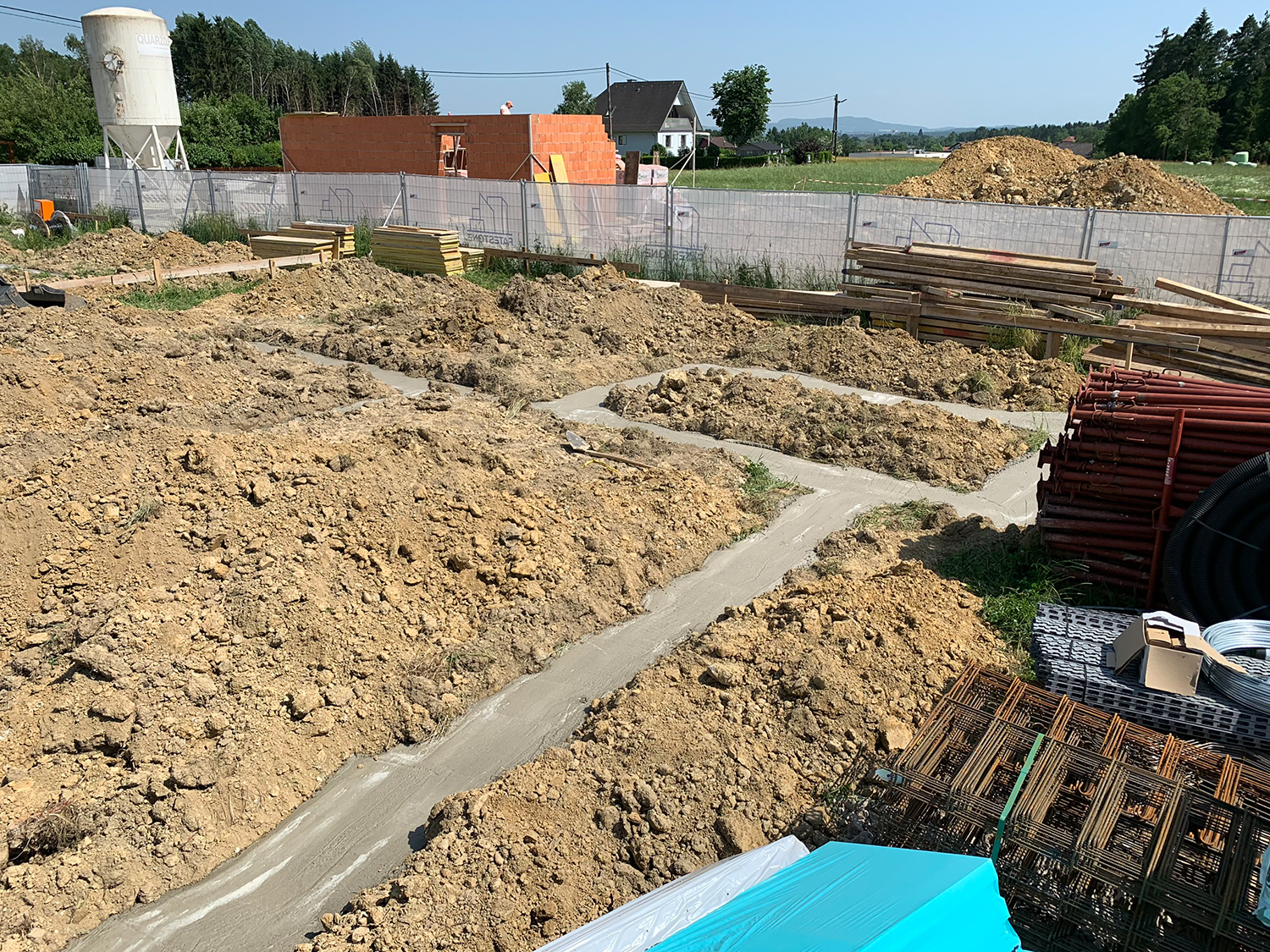 Bisher wurden die Fundamentstreifen ausgehoben und betoniert, sodass schon mal ein standfester Unterbau für die Bodenplatten gegeben ist. Diese werden nächste Woche vorbereitet, bewehrt und betoniert werden. Doch bevor es soweit ist, möchten wir euch die ersten Bilder vom Baustart präsentieren. Viel Spaß beim Schauen: