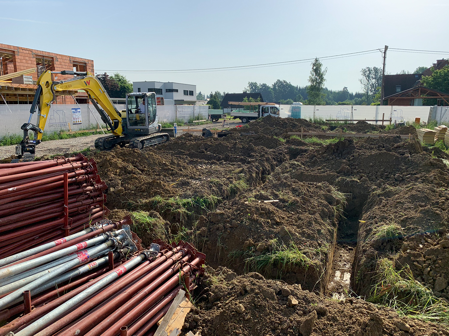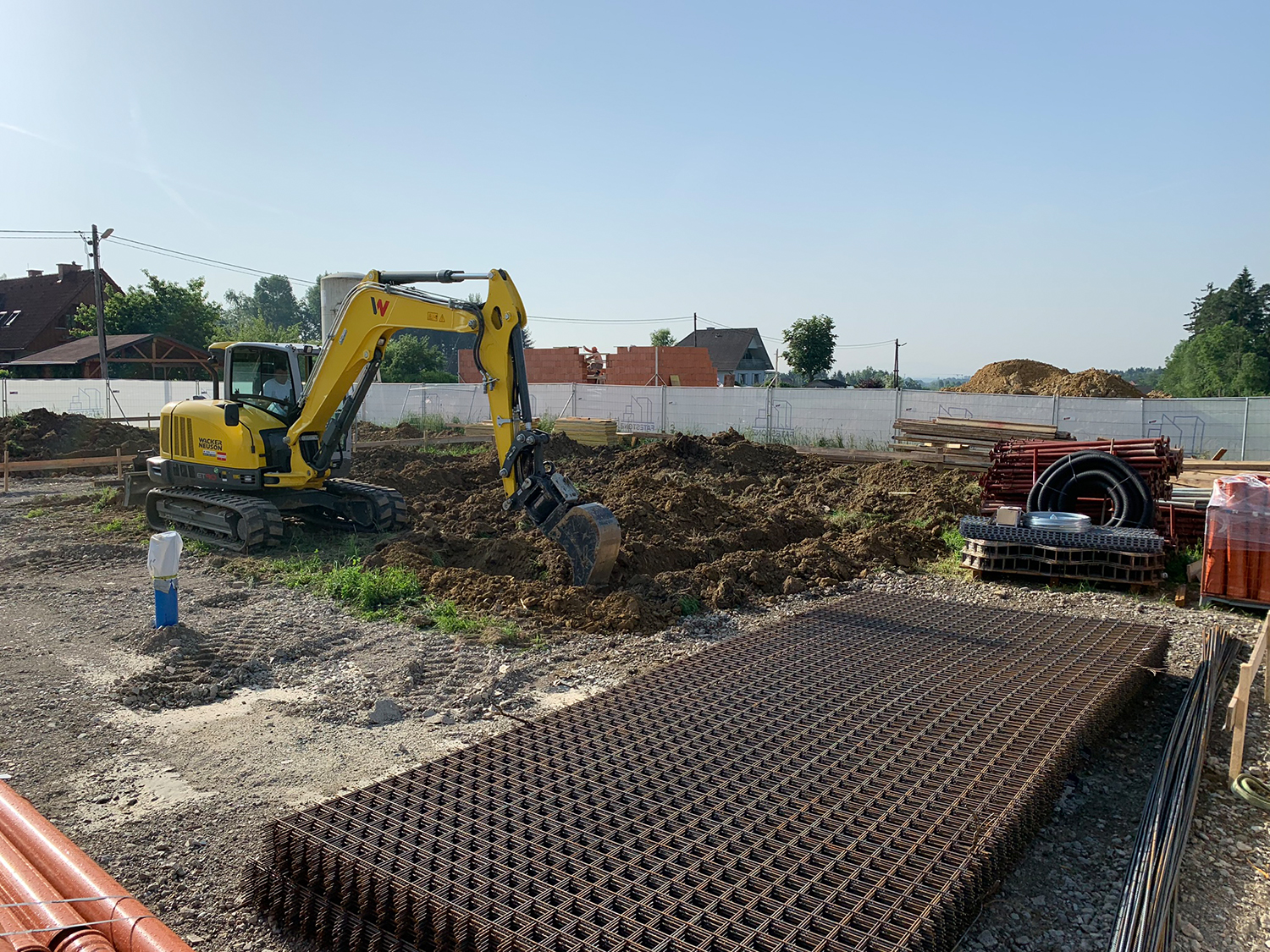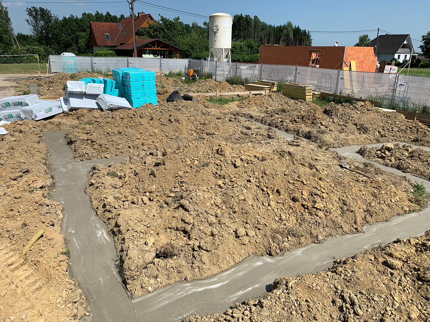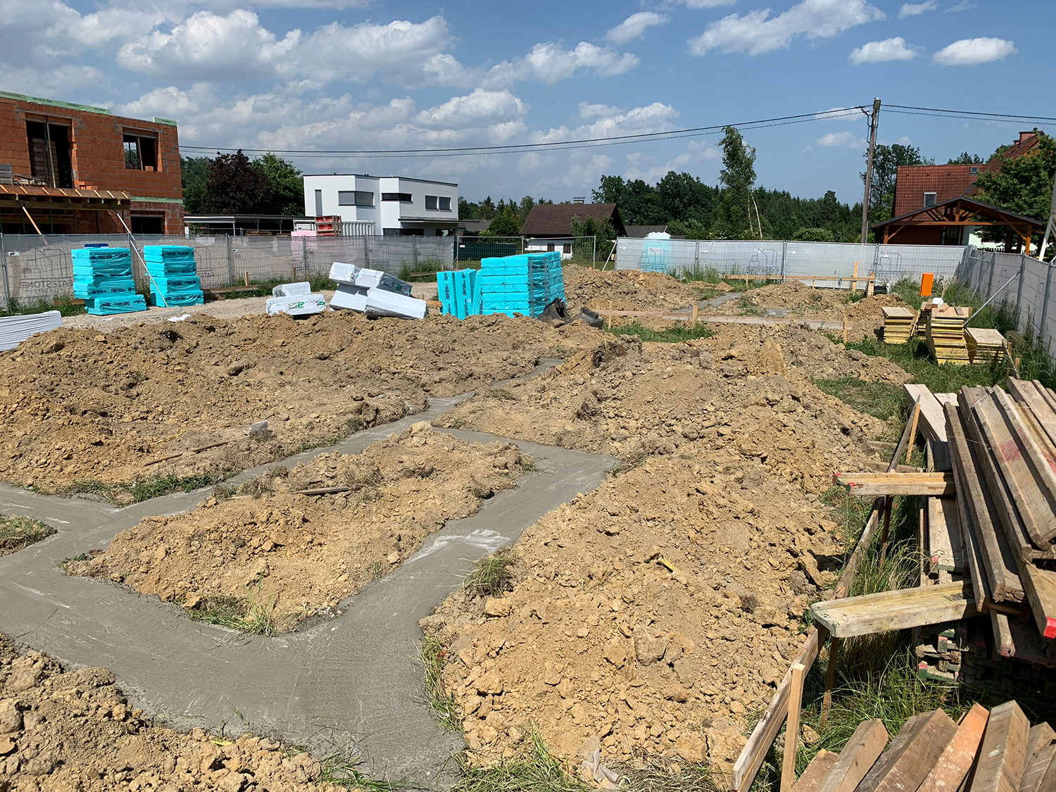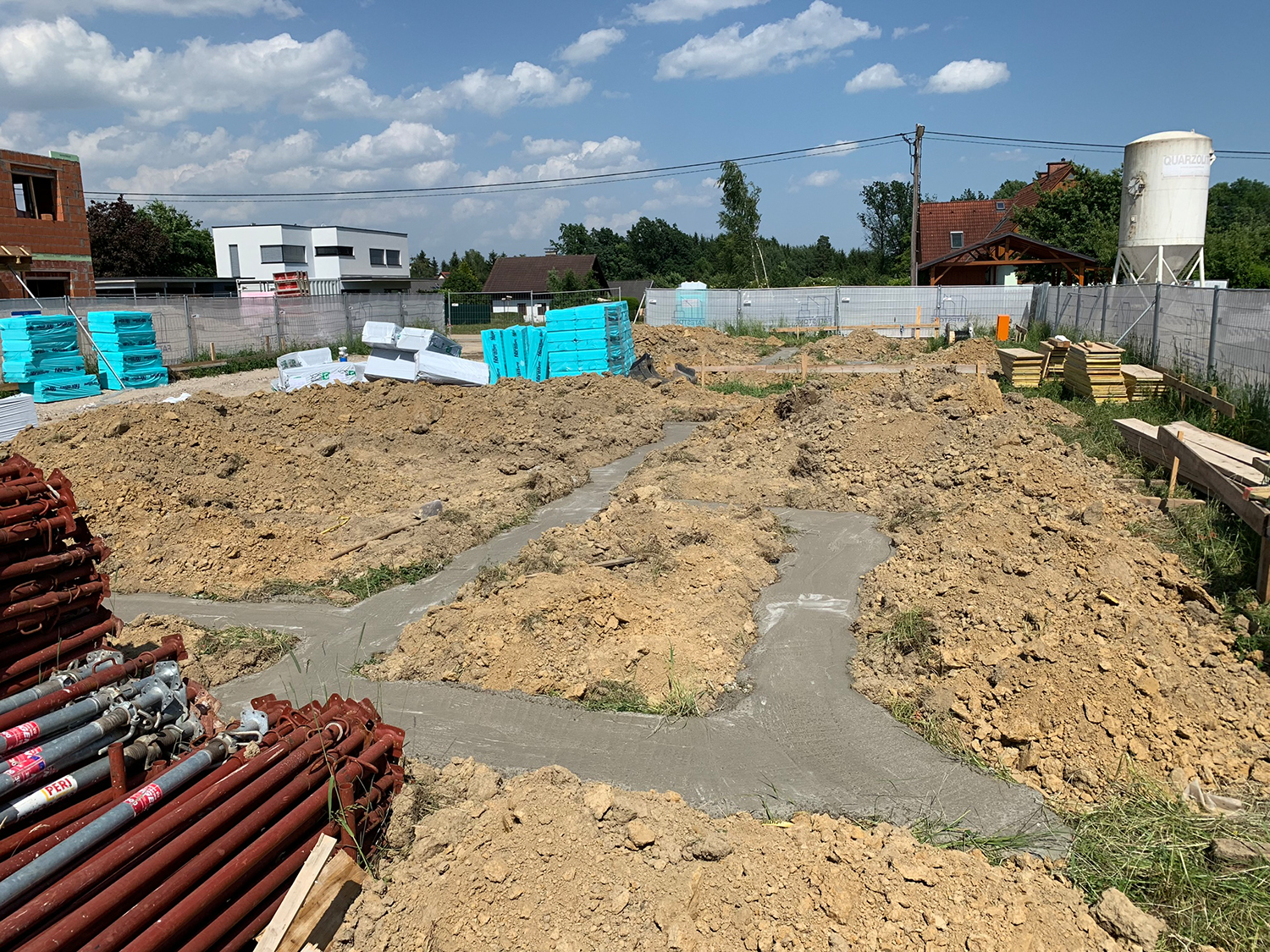 Bisher wurden die Fundamentstreifen ausgehoben und betoniert, sodass schon mal ein standfester Unterbau für die Bodenplatten gegeben ist. Diese werden nächste Woche vorbereitet, bewehrt und betoniert werden. Doch bevor es soweit ist, möchten wir euch die ersten Bilder vom Baustart präsentieren. Viel Spaß beim Schauen: