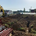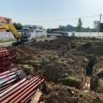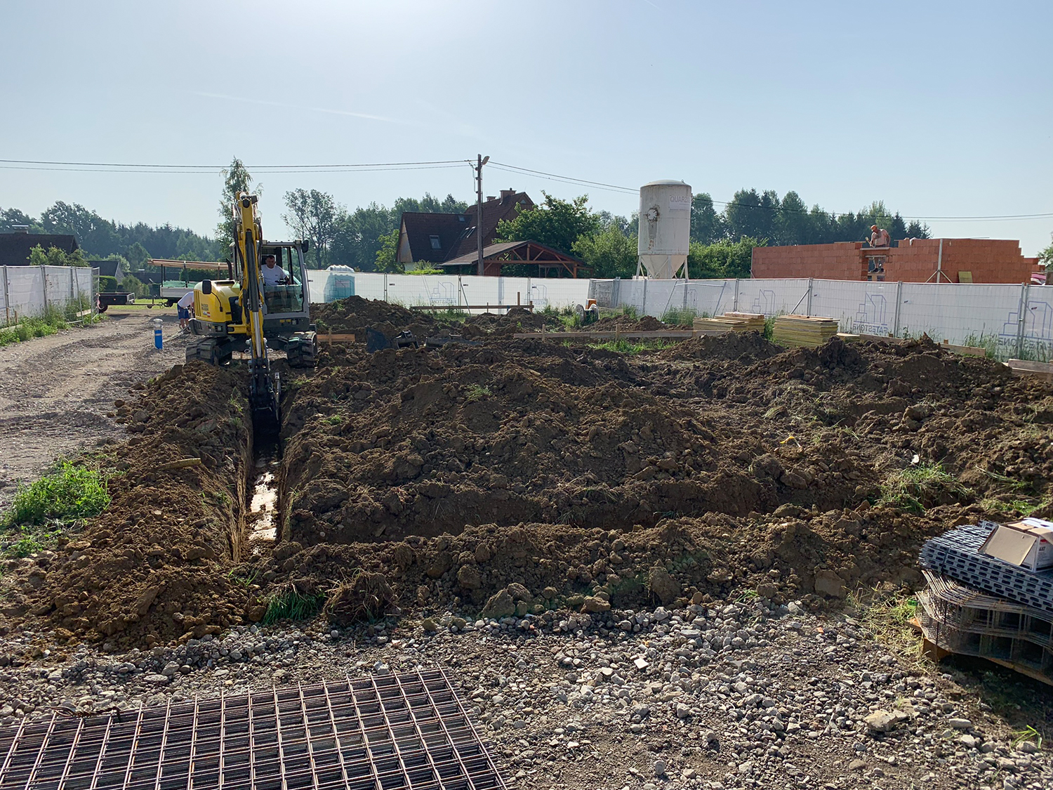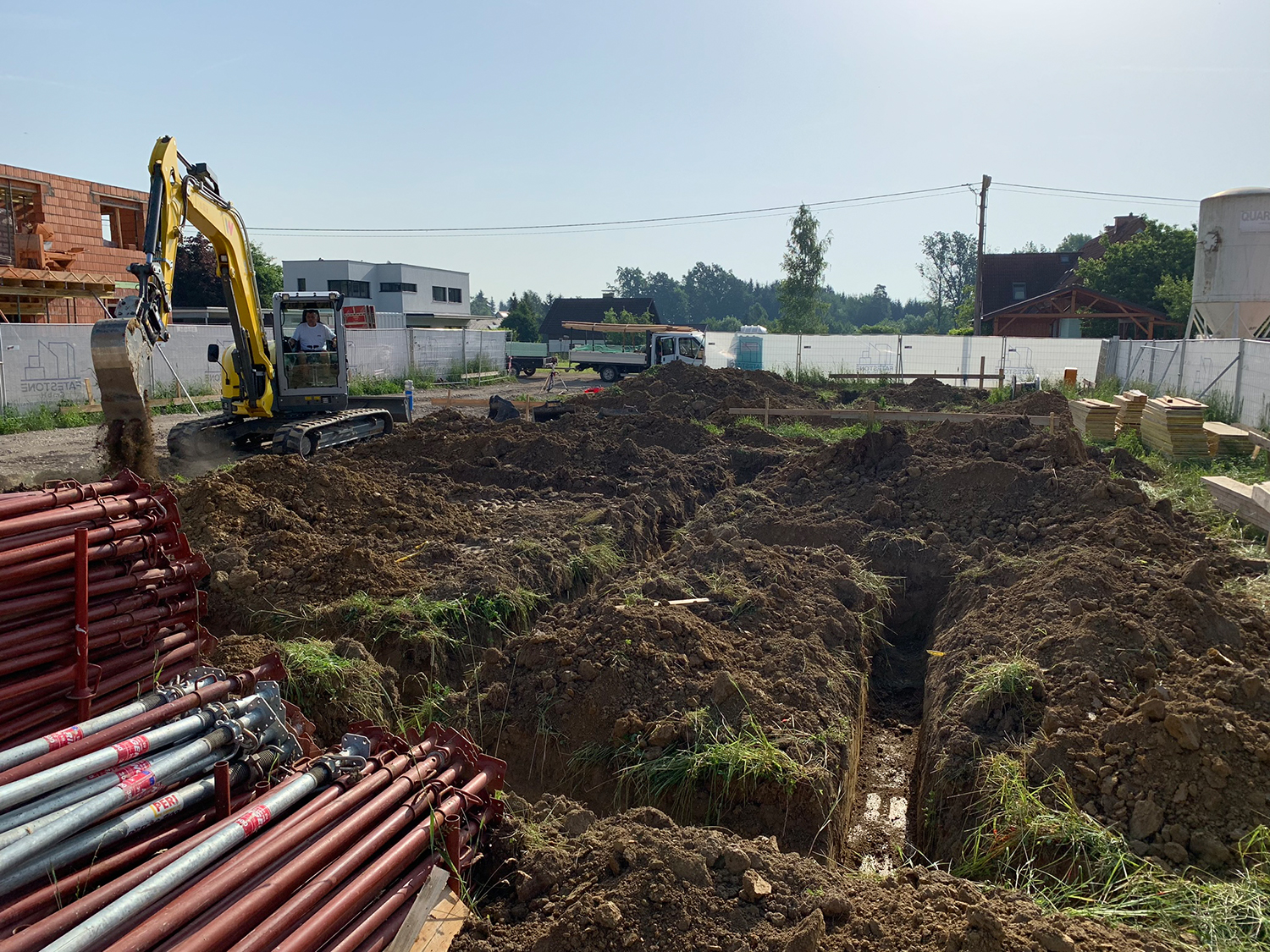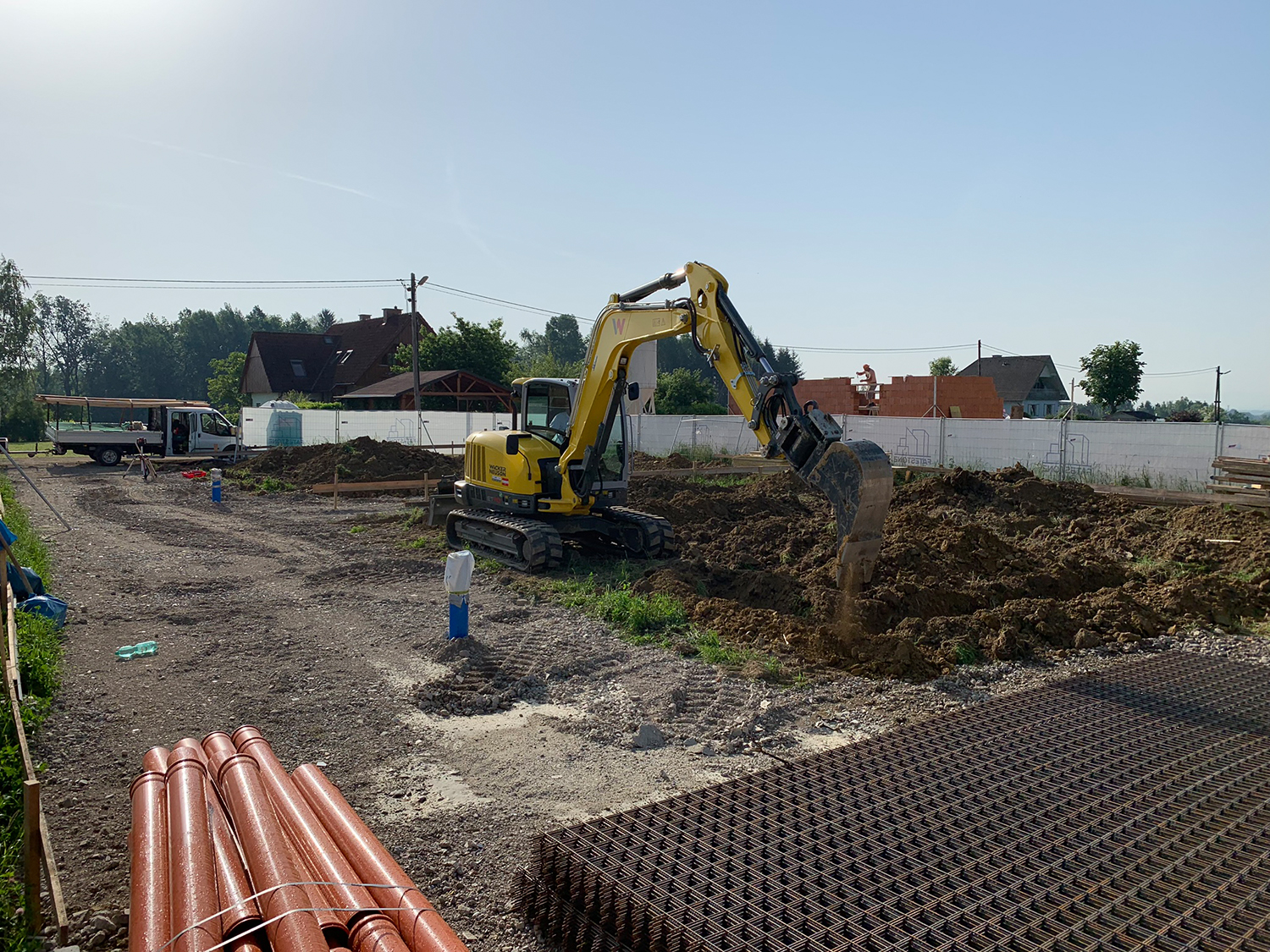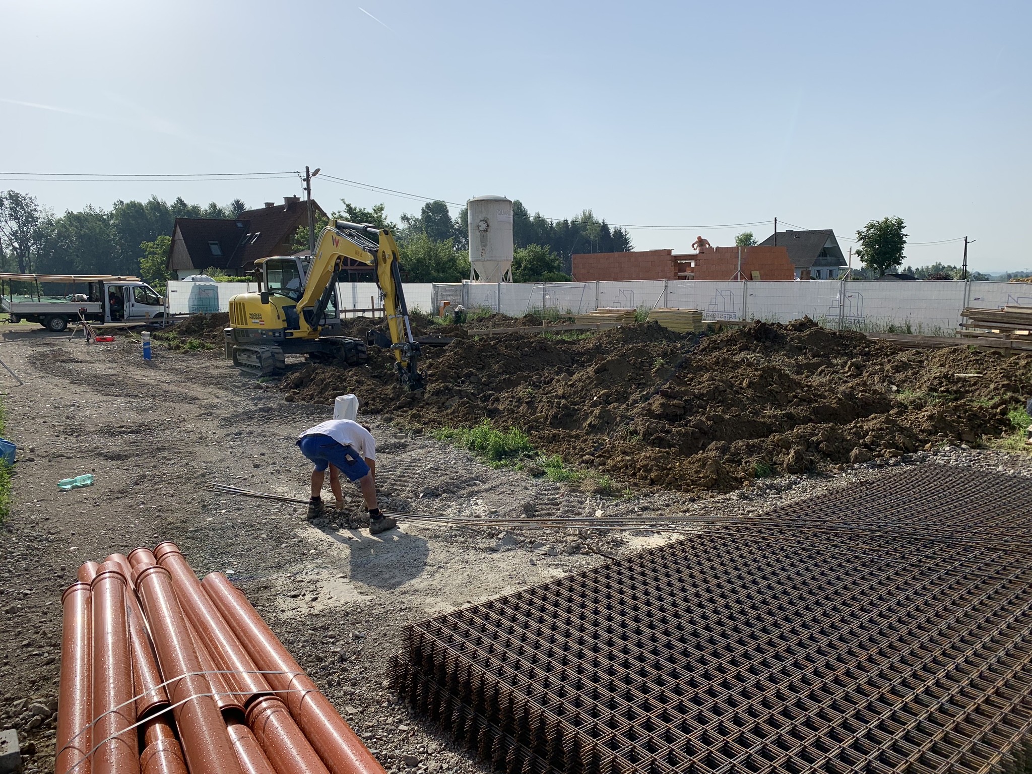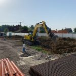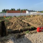 Bisher wurden die Fundamentstreifen ausgehoben und betoniert, sodass schon mal ein standfester Unterbau für die Bodenplatten gegeben ist. Diese werden nächste Woche vorbereitet, bewehrt und betoniert werden. Doch bevor es soweit ist, möchten wir euch die ersten Bilder vom Baustart präsentieren. Viel Spaß beim Schauen: