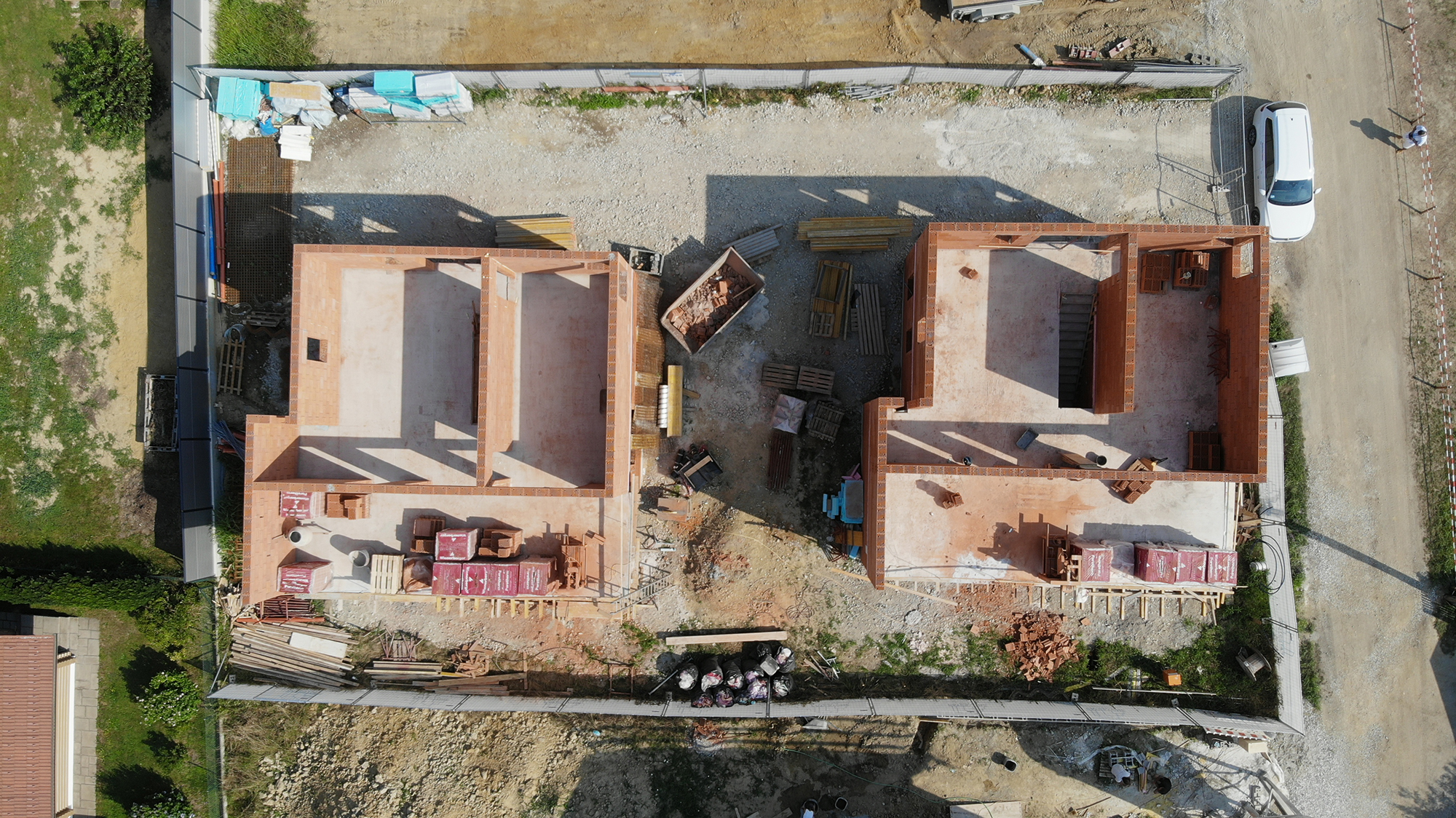Doch bevor es soweit ist, möchten wir euch die Bilder von der fertigen Aufmauerung der Obergeschosswände nicht vorenthalten. Selbstverständlich wieder mit unserer Fatestone-Drohne aus der Luft geschossen. Viel Spaß beim Durchklicken!