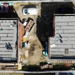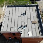 Nach dem Sommerurlaub haben wir die Obergeschossdecke betoniert, und direkt im Anschluss gleich die Attika hergestellt. Anschließend wurden die Kamine sowie die Zwischenwände im Erdgeschoss aufgemauert. Dadurch war auch der Weg für die Flachdachabdichter-Partie frei, sodass diese bereits das Flämmen der Bitumenbahnen angefangen haben. Zuerst haben sie die Bodenplatten ganzflächig geflämmt, und hinterher haben sie das Flämmen auf der Obergeschossdecke in Angriff genommen.