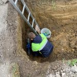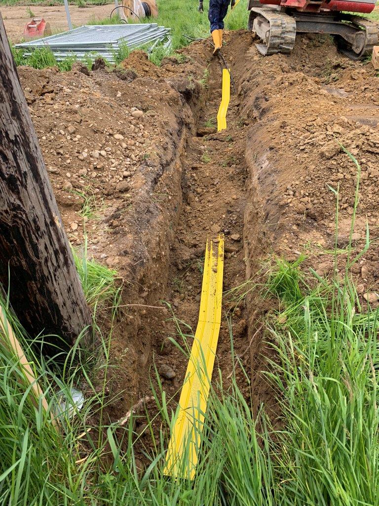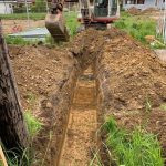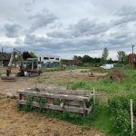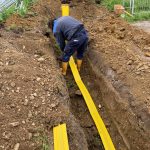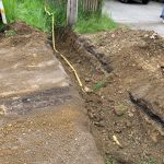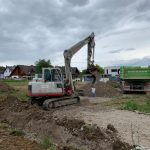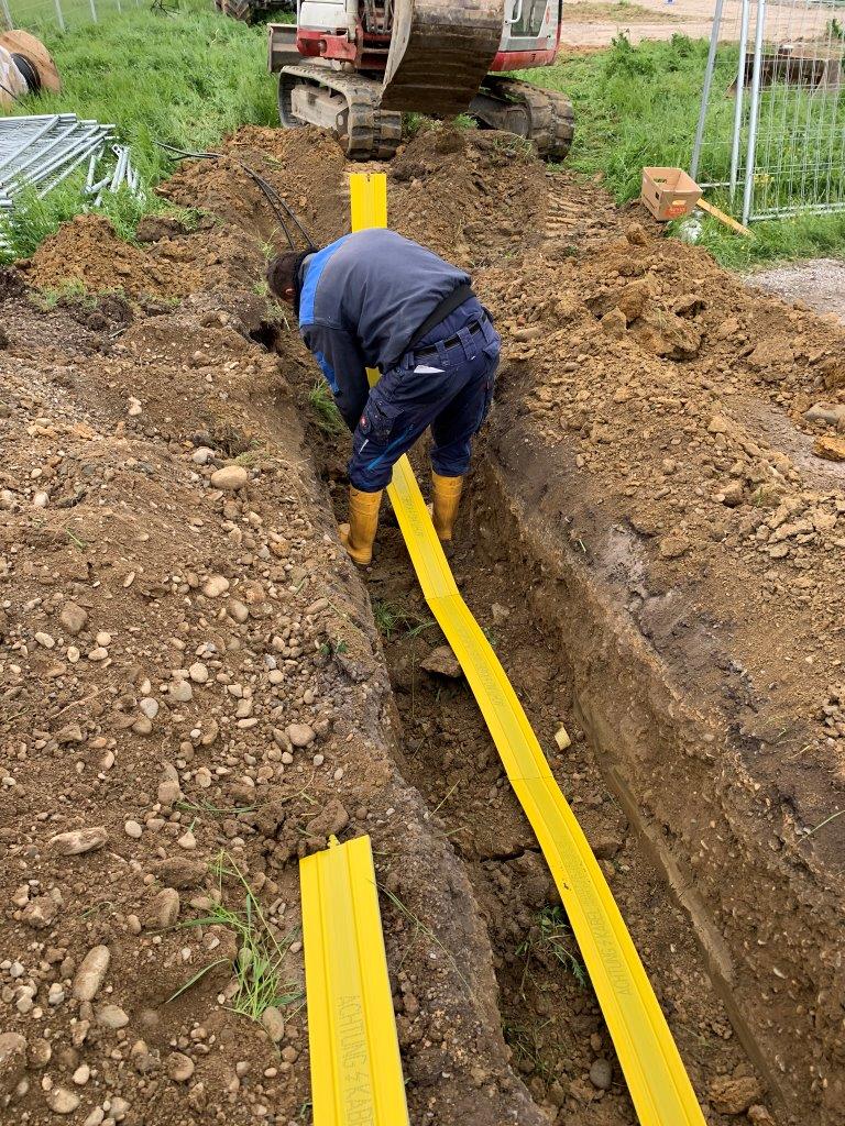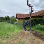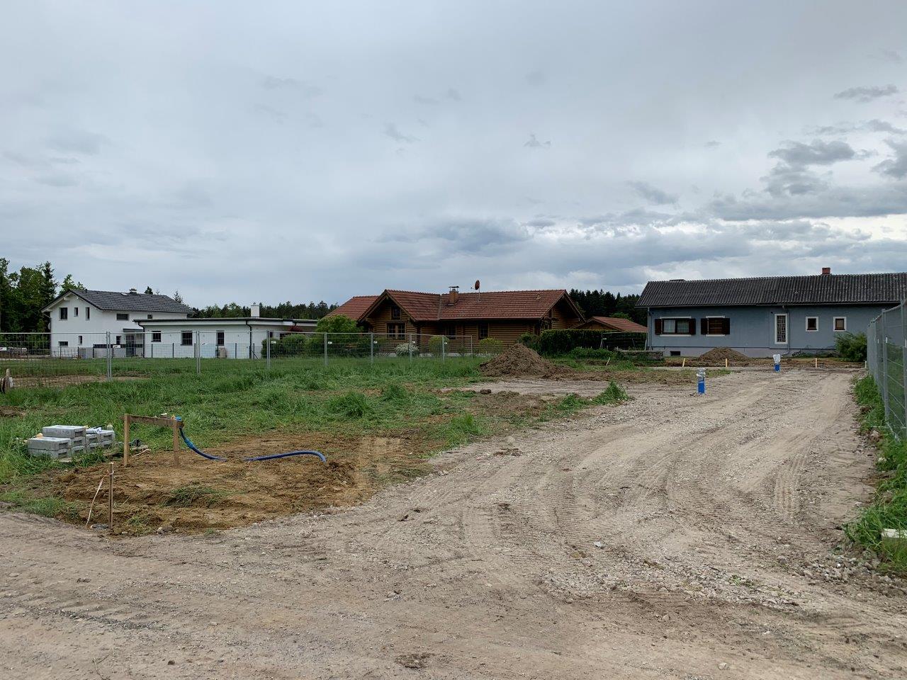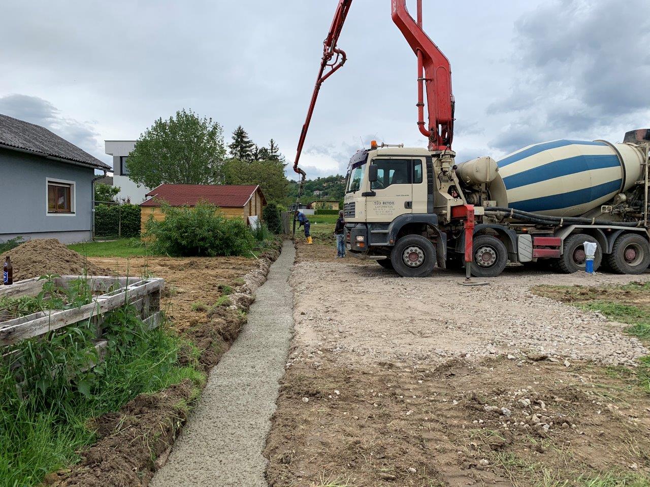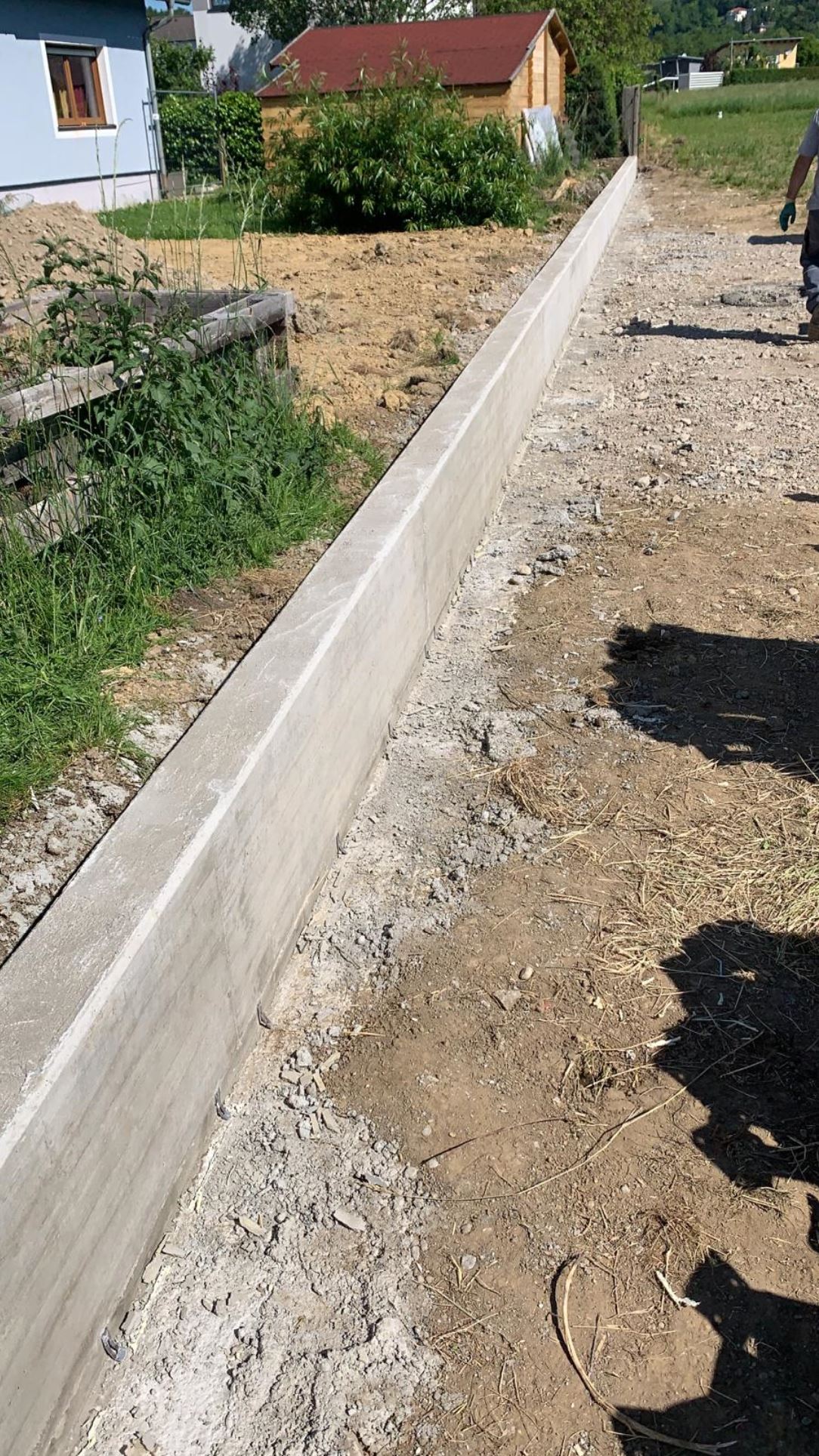 Nachdem uns das Wetter, wie so oft, durch die heftigen Regenfälle einen Strich durch die Rechnung gemacht hat, und somit der Baubeginn im Hofstättenweg zurückverlegt werden musste, konnten wir inzwischen zumindest die Einfahrt schottern, den Baustrom und das Bauwasser installieren sowie den ersten Zaunsockel betonieren.