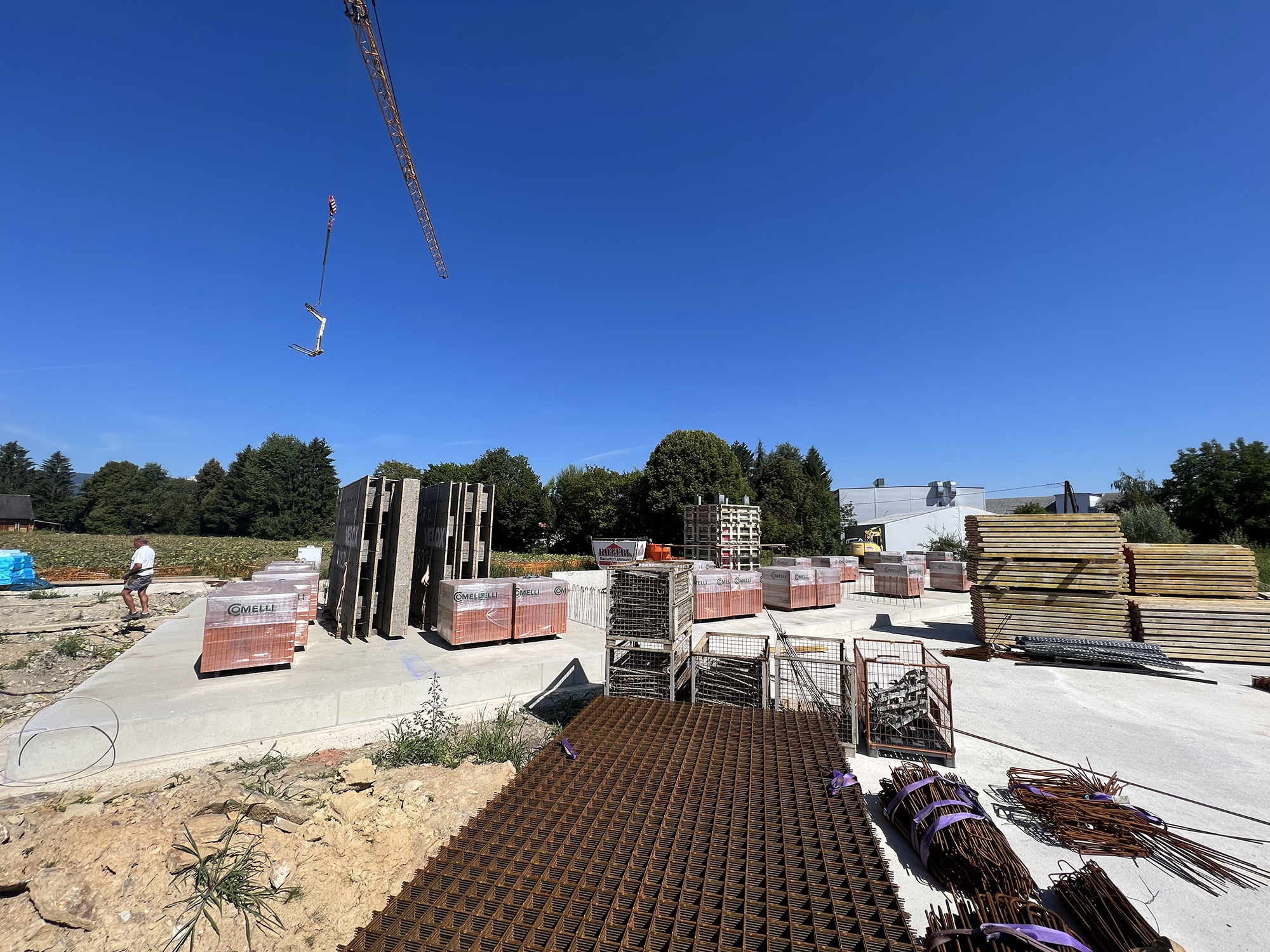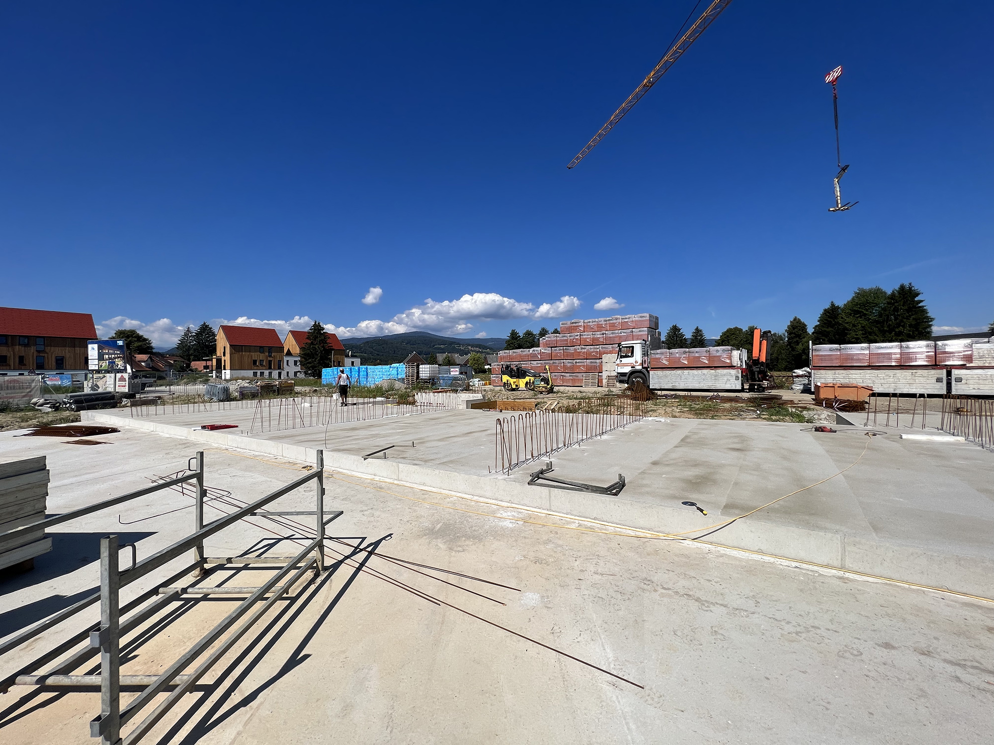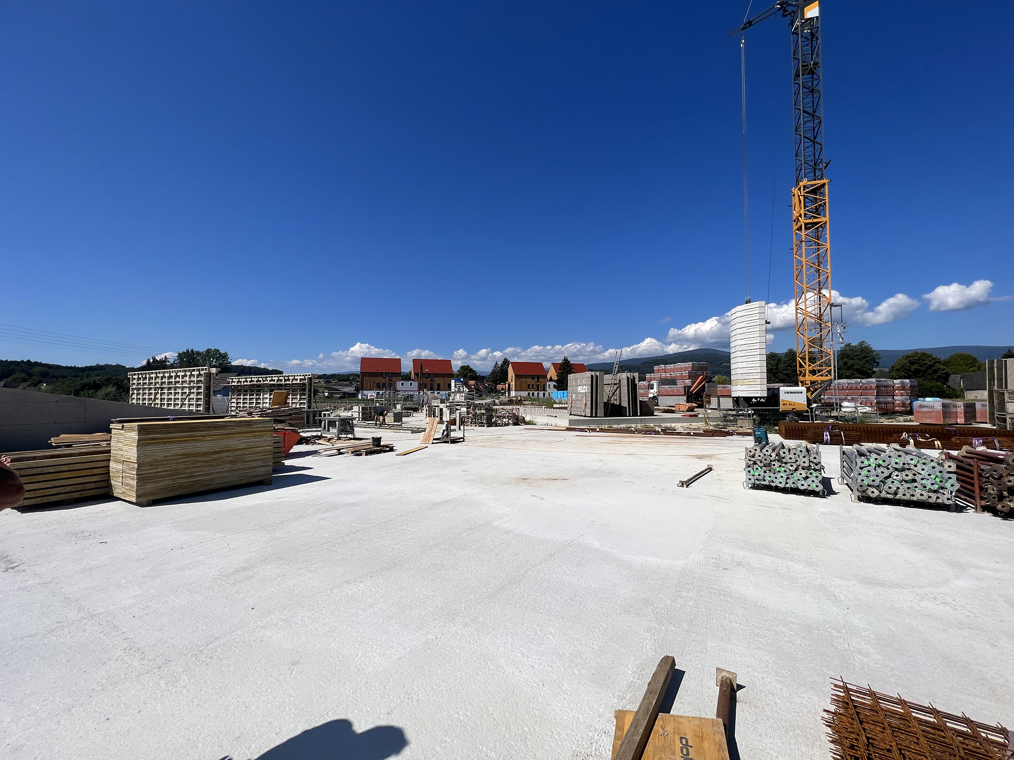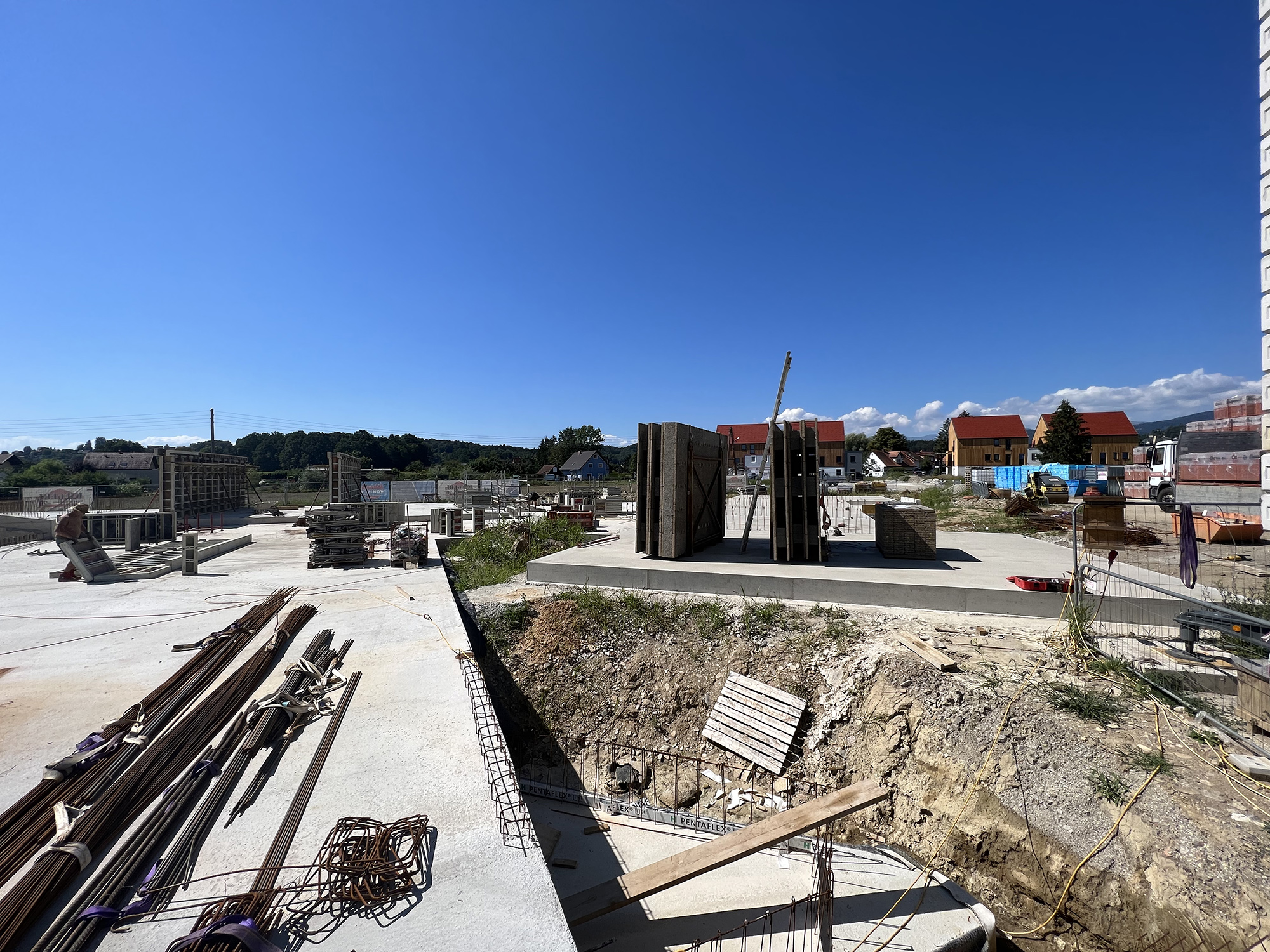 Jedenfalls werden wir euch schon bald ein neues Drohnenvideo liefern, sobald der Rohbau der ersten beiden Häuser signifikant erkennbar ist. Doch bis es soweit ist, möchten wir euch ein paar Bilder von der Baustelle zeigen, welche am Donnerstag, 11.08.2022, geschossen wurden. Viel Spaß beim Anschauen!