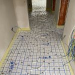 Kurz darauf, nachdem man anhand des Innenputzes die Wandinstallationen überdeckt hat, begruben wir auch die Bodeninstallationen mittels gebundener Schüttung. Nach einer angemessenen Trocknungsphase kehrten auch die Installateure unserer Partner-Firma Krobath züruck, um mit den Arbeiten an der Fußbodenheizung zu beginnen. Das ist nämlich auch der letzte Schritt, bevor der Estrich nächste Woche verlegt wird, und damit auch die letzte Bodenaufbauschicht vor den Fliesen bzw. dem Parkett.